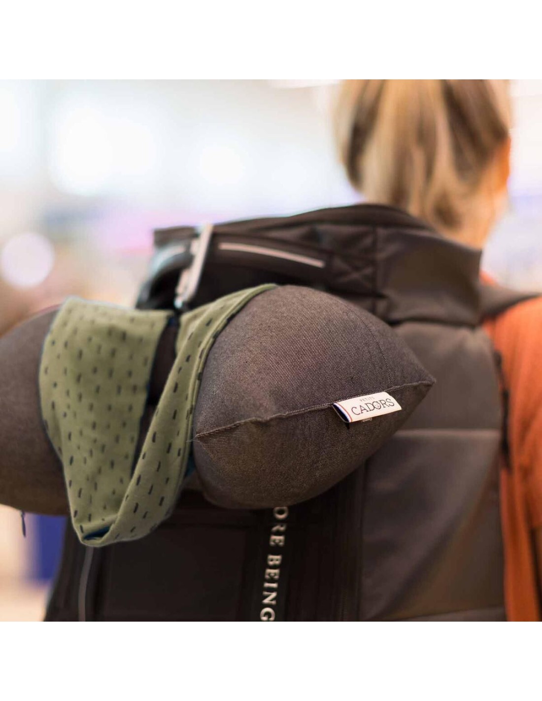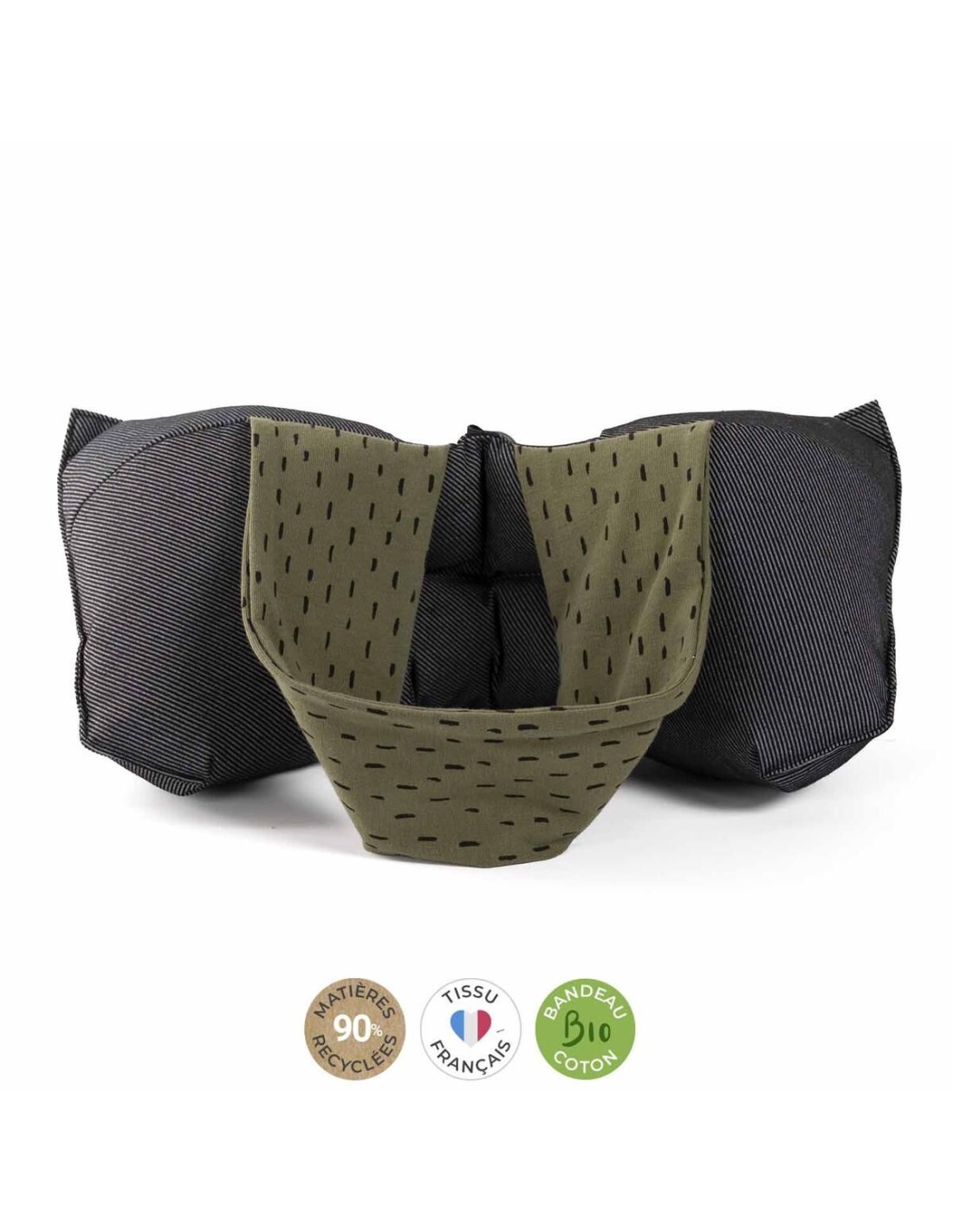 Son masque extensible en coton BIO placé sur les yeux, occulte la lumière et permet de trouver rapidement le sommeil. Vous pouvez vous relâcher complètement. ELLIPSE, lui, ne vous lâchera pas ! Avec son mousqueton vous pourrez l'accrocher à votre sac.