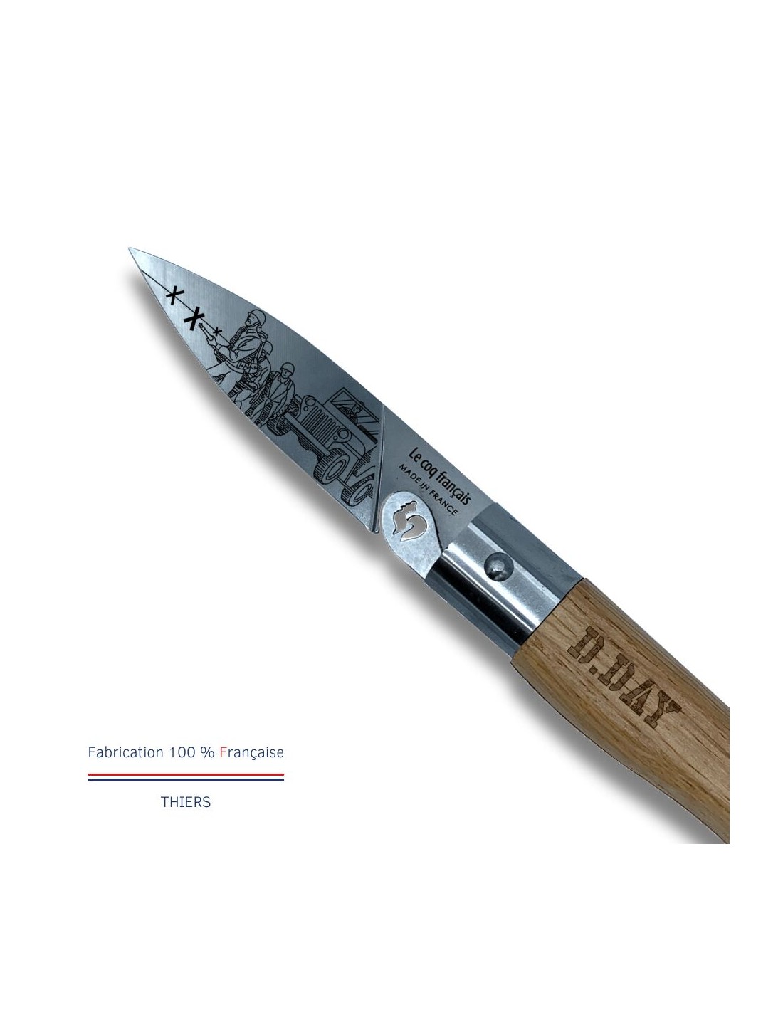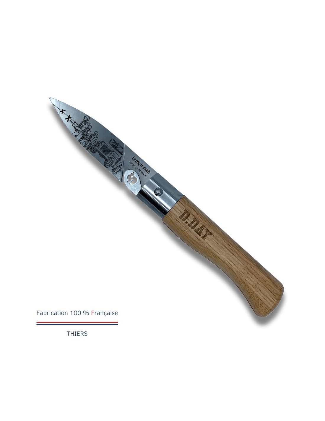 Carte Duo Le D-Day - Couteau de poche Le Coq Authentique Le D-Day - manche chêne + étui