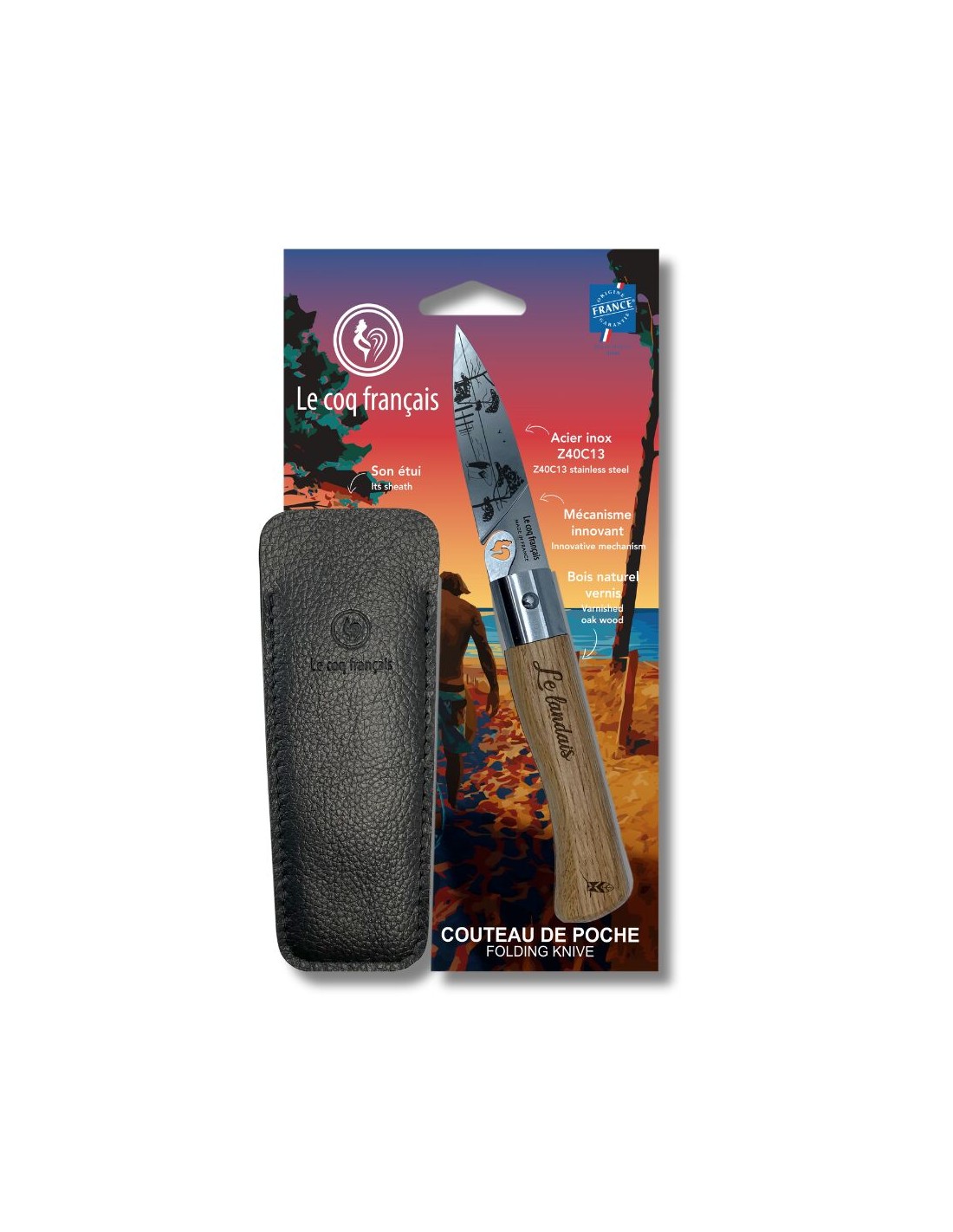 Carte Duo Le Landais - Couteau de poche Le Coq Authentique Le Landais - manche chêne + étui