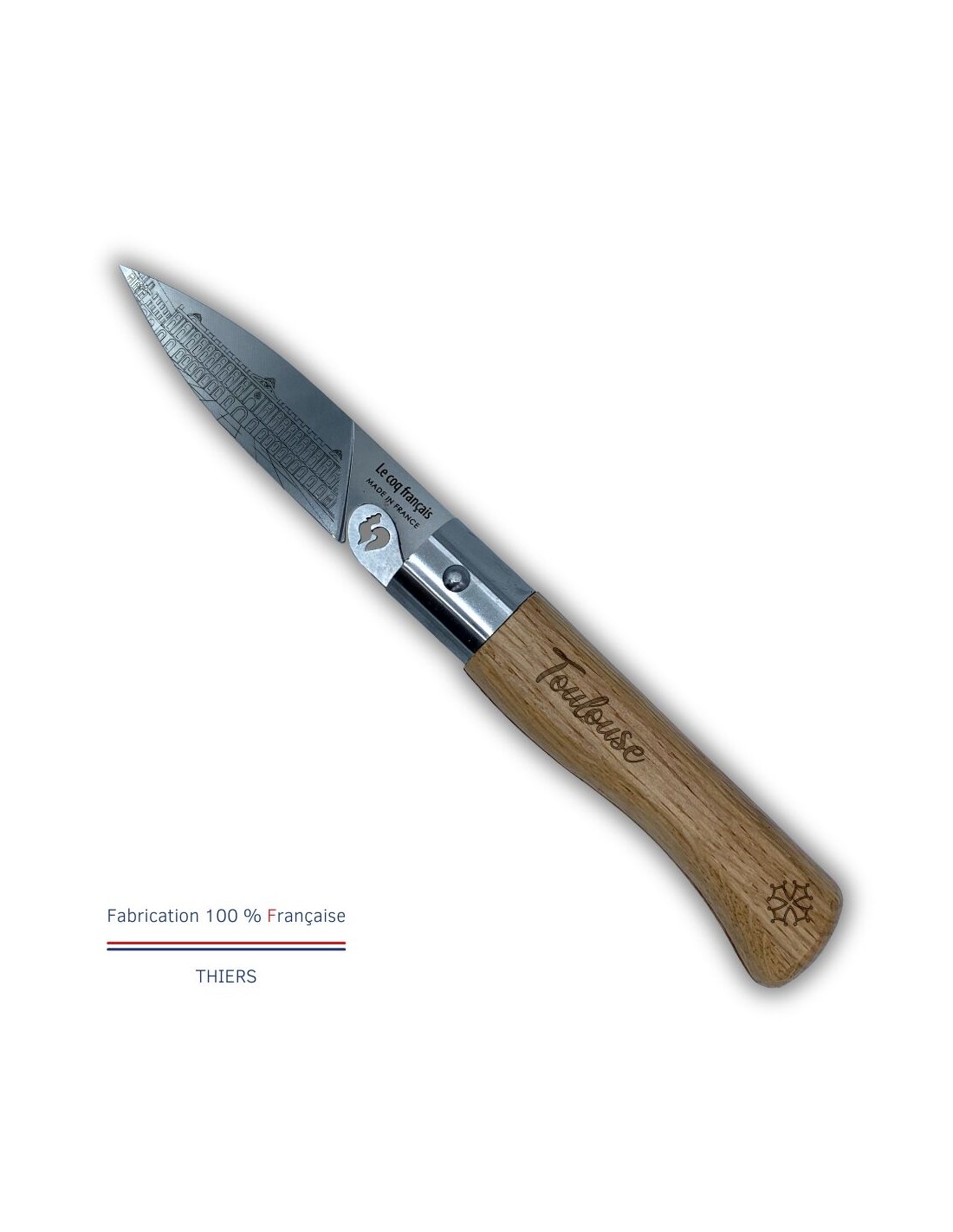 Carte Duo Le Toulousain - Couteau de poche Le Coq Authentique Le Toulousain - manche chêne + étui