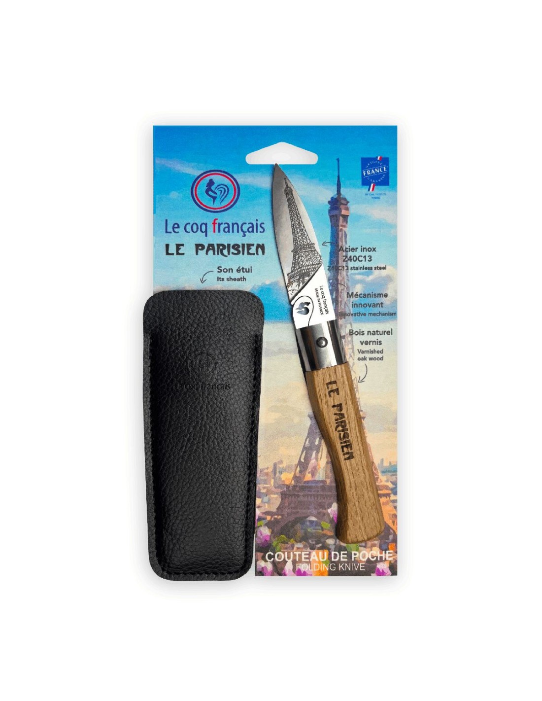 Carte Duo Le Parisien - Couteau de poche Le Coq Authentique Le Parisien - manche chêne + étui