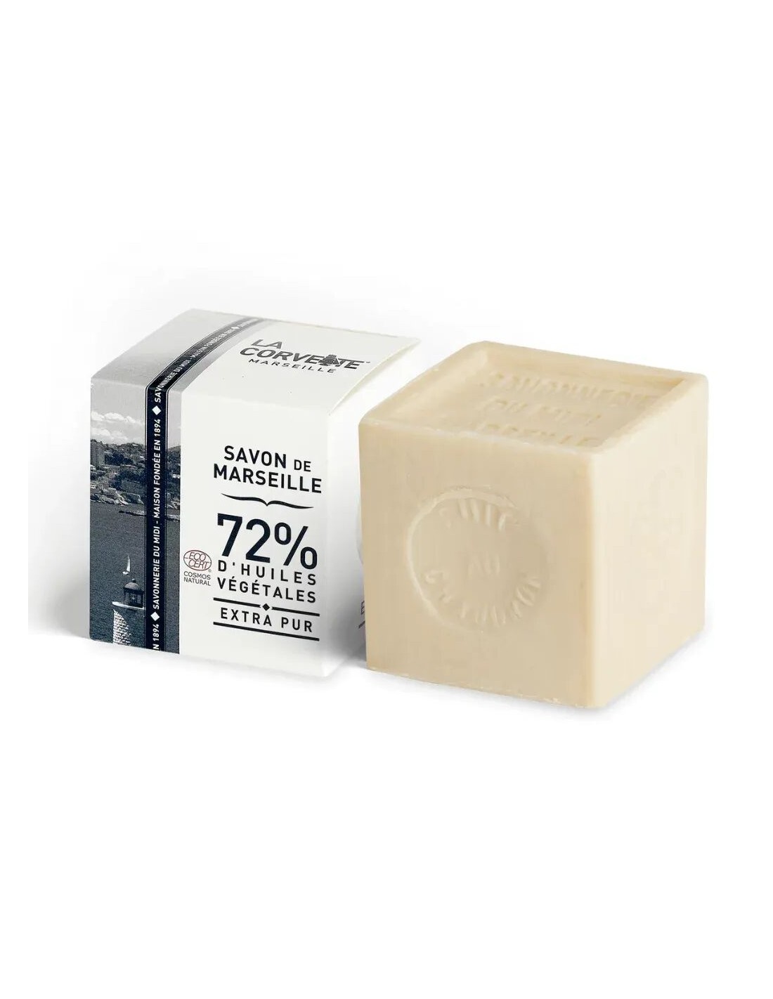 Savon de Marseille Extra Pur labellisé Origine France Garantie, fabriqué à Marseille selon la cuisson au chaudron. 100 % naturel, sans parfum ni conservateur. Doux, hypoallergénique et écologique.