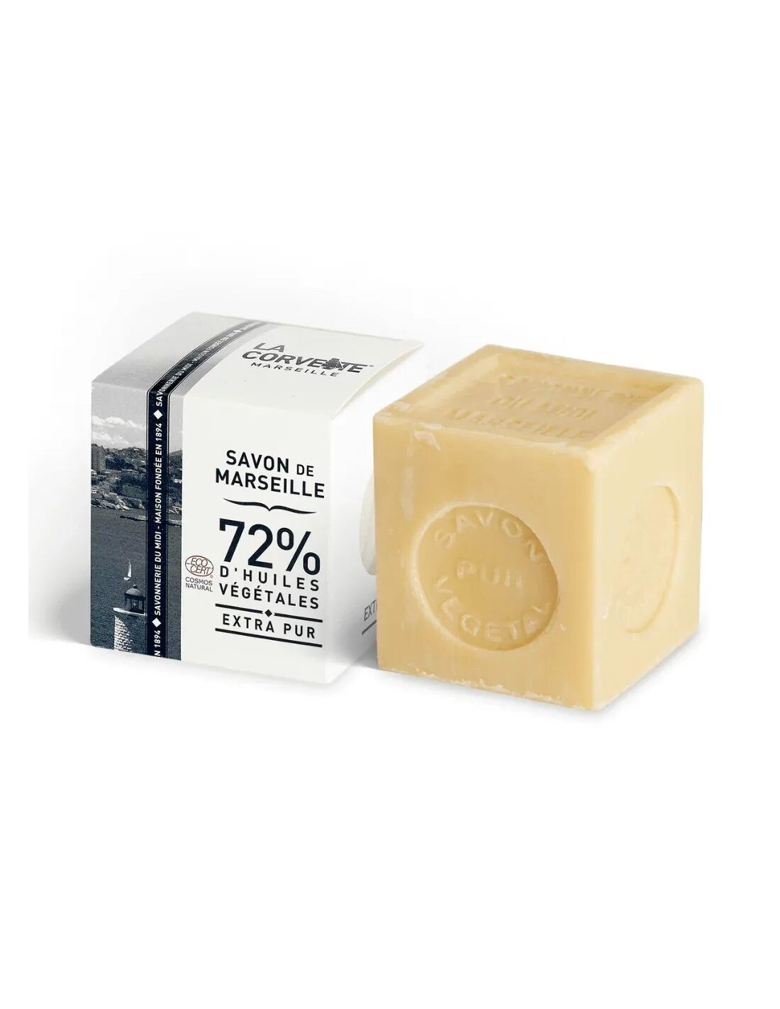 Savon de Marseille Extra Pur labellisé Origine France Garantie, fabriqué à Marseille selon la cuisson au chaudron. 100 % naturel, sans parfum ni conservateur. Doux, hypoallergénique et écologique