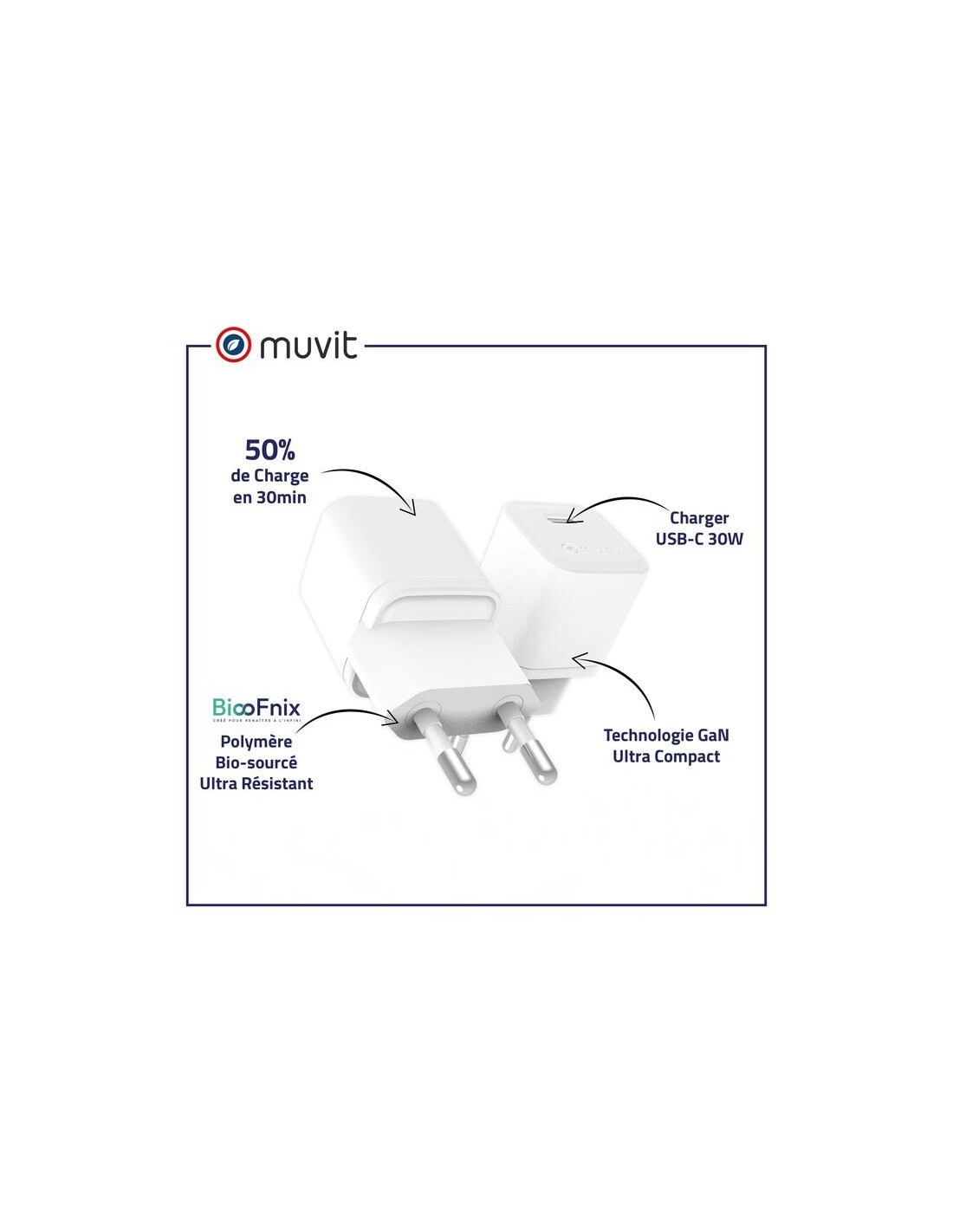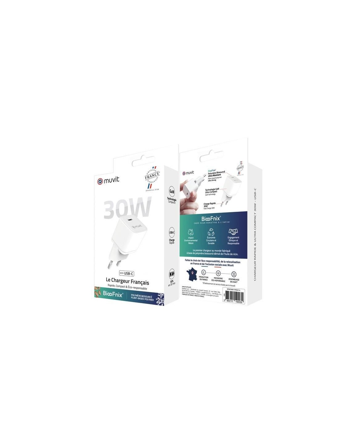 CHARGEUR SECTEUR UNIVERSEL - GAN 30W USB-C BIOSOURCE BLANC