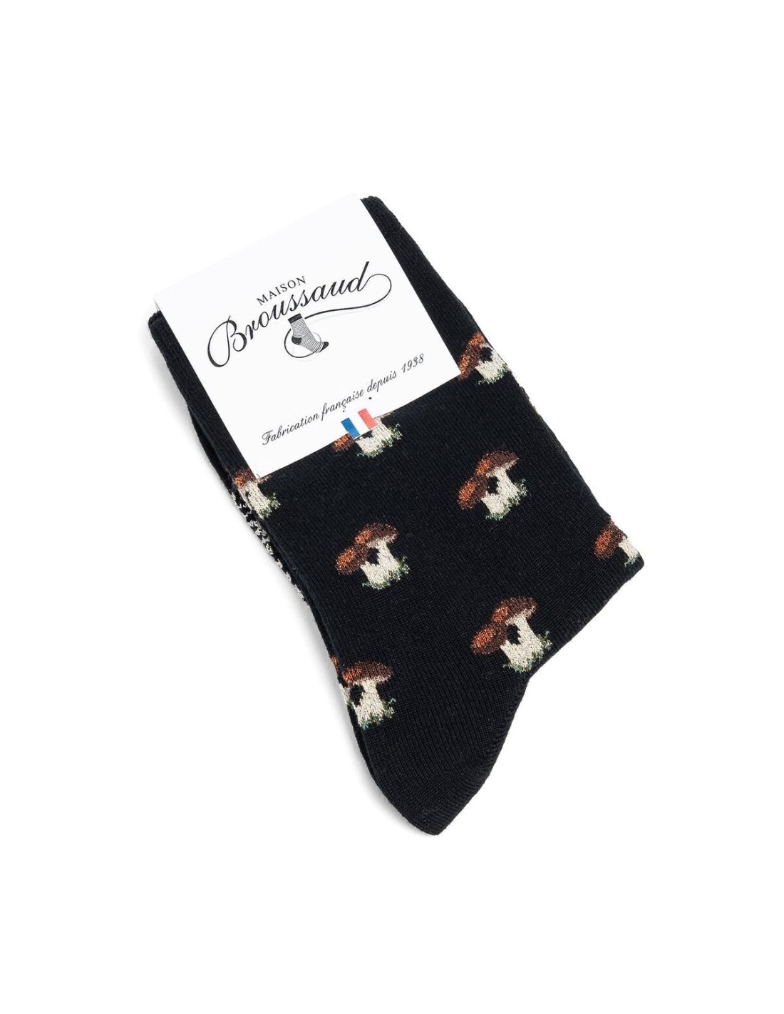 Explorez toute la splendeur de l'automne avec les pieds au chaud grâce à la paire de chaussettes en laine "Cèpes" de la Maison Broussaud. Cette collection automnale est inspirée des nuances chaudes de la forêt et de la fameuse cueillette des champignons. Dans ce modèle, on retrouve une teinte noire sobre et élégante qui se marie harmonieusement aux touches de fil pailletées sur ses cèpes. Prêts à affronter les jours froids avec élégance ? Confectionnées avec une majorité de laine et de coton, ces chaussettes offrent un confort exceptionnel et une sensation de chaleur douillette lorsque les journées sont fraîches.