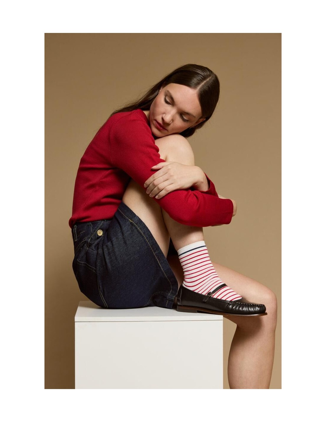 Les marinières Armor-lux x Maison Broussaud - chaussettes femme - coton écru rouge marine