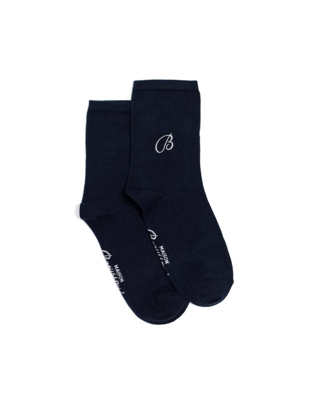 Les unies broderie B - chaussettes femme - coton marine