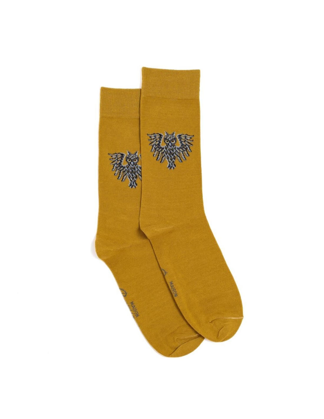 La paire de chaussettes "Les Hiboux" de Maison Broussaud, c'est un mélange bien dosé d'originalité et de raffinement. Brodés avec soin sur les chevilles, ces hiboux aux ailes écartées donnent un petit côté royal et mystérieux à vos tenues.