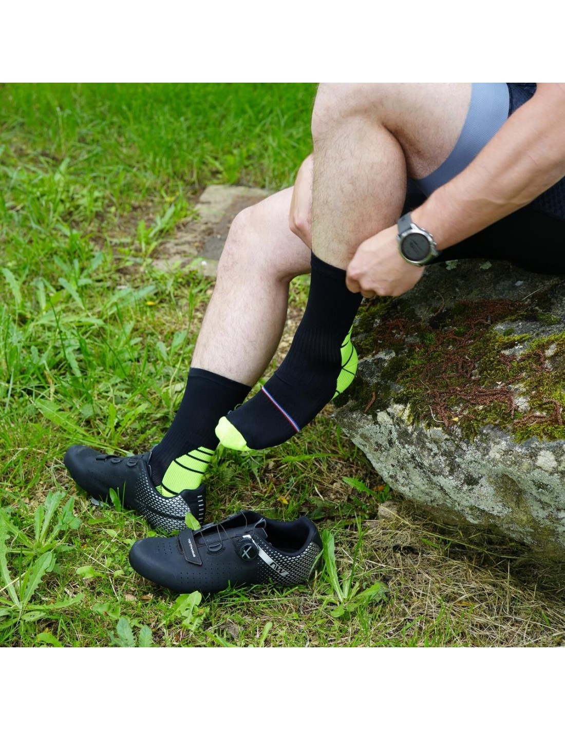 Nos chaussettes cyclisme coloris noir/jaune - Maison Broussaud