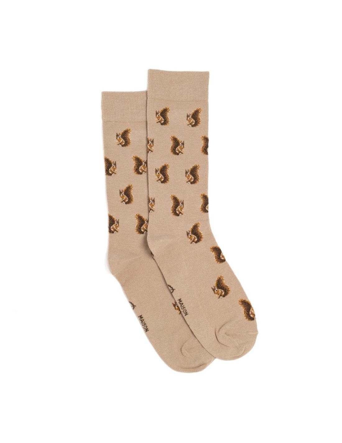 Vous cherchez l'accessoire parfait pour l'automne ? Les chaussettes "Les Écureuils" réchauffent les journées automnales et celles d'hiver. Tricotées de petits écureuils sur un fond écru lumineux, elles ajoutent une touche d'originalité à n'importe quel look.