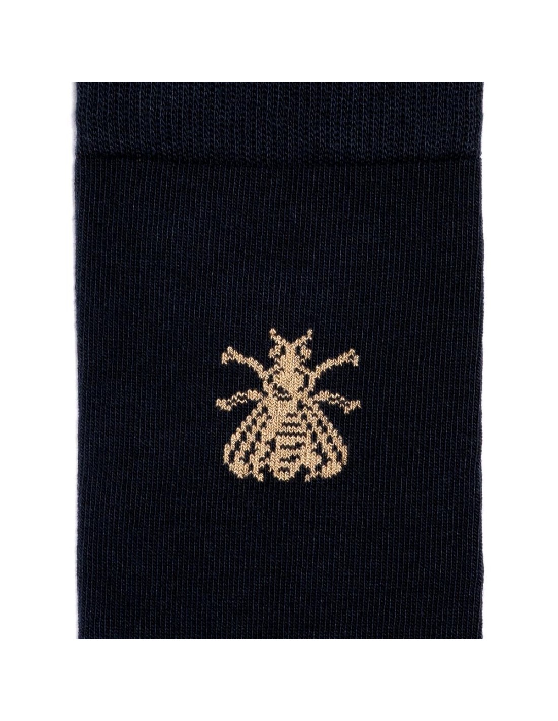 La paire de chaussettes pour homme "Abeille" en coton bleu marine de notre collection Napoléon est une pièce phare pour les passionnés de l'ancien souverain français. Fabriquée dans les ateliers de la Maison Broussaud, elle célèbre l'élégance et l'histoire de l'Empereur de France. Sur ce modèle à la belle couleur marine, on retrouve une abeille tricotée au fil doré. Ce symbole est le deuxième emblème de Napoléon Ier, après l'iconique aigle qui pare d'autres accessoires de la même collection. Discrètes, ces chaussettes pour homme conviennent parfaitement à un port quotidien. Vous souhaitez en faire cadeau ? N'oubliez pas de jeter un œil au caleçon Napoléon bleu marine pour créer un coffret assorti.