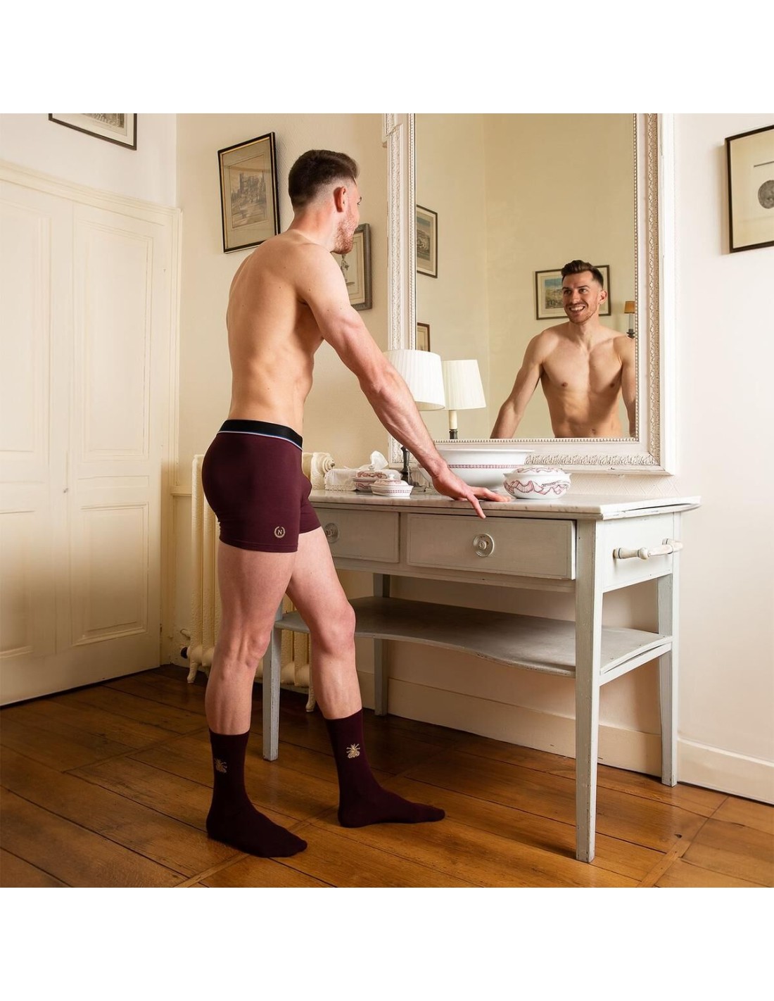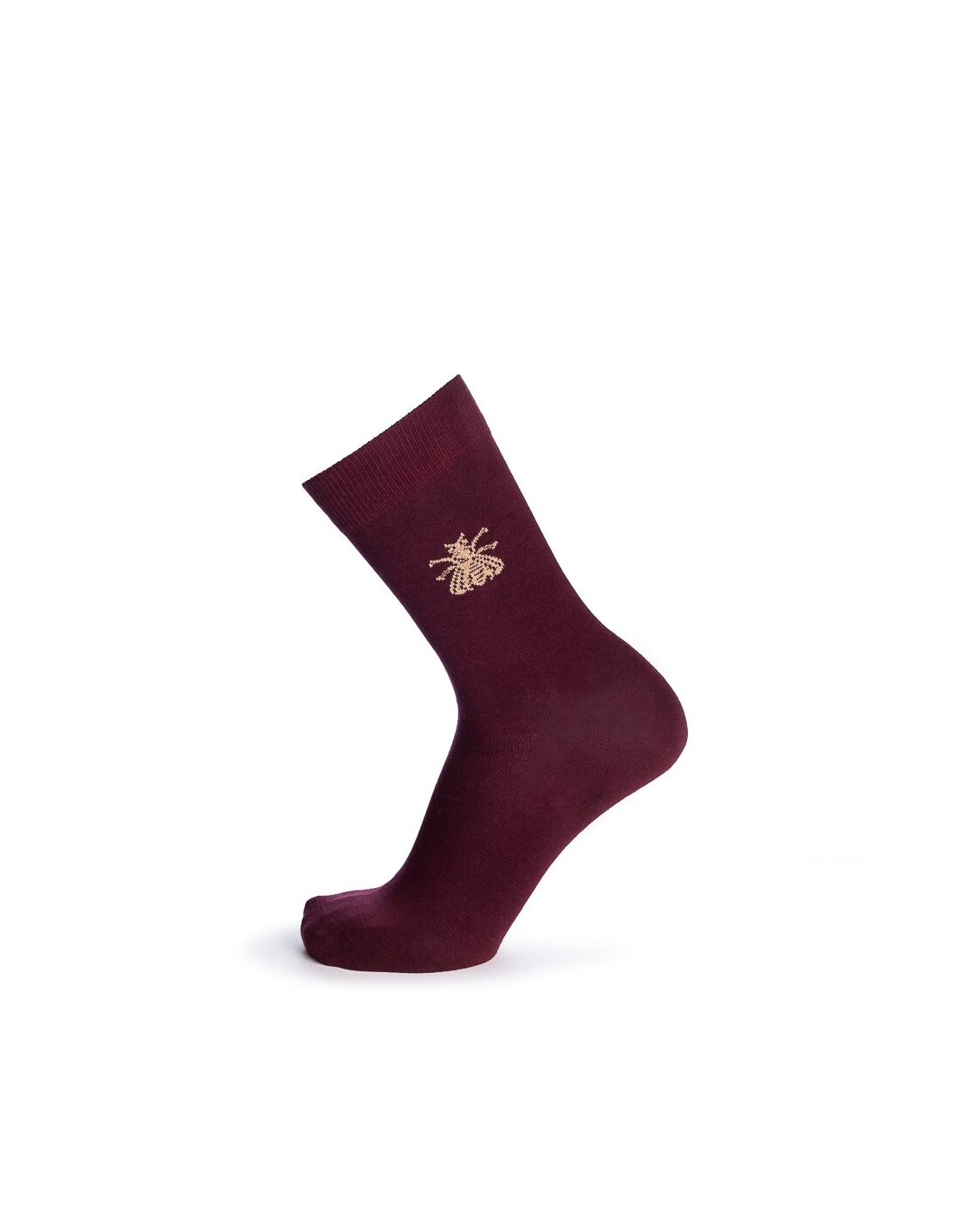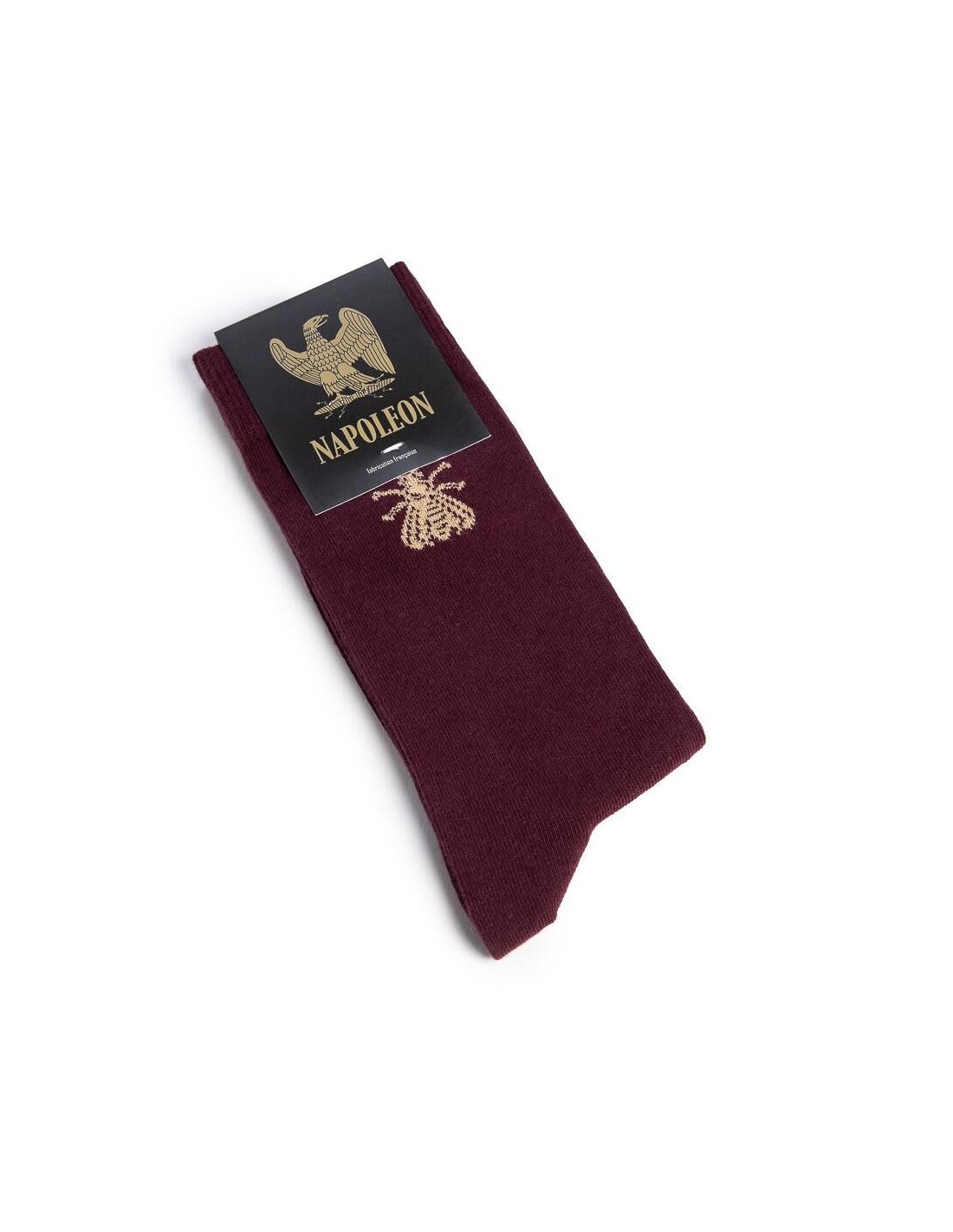 La paire de chaussettes pour homme "Abeille" de notre collection Napoléon est une pièce phare pour les passionnés de l'ancien souverain français. Fabriquée dans les ateliers de la Maison Broussaud, elle célèbre l'élégance et l'histoire de l'Empereur de France. Sur ce modèle à la belle couleur bordeaux, on retrouve une abeille tricotée au fil doré. Ce symbole est le deuxième emblème de Napoléon Ier, après l'iconique aigle qui pare d'autres accessoires de la même collection. Discrètes, ces chaussettes pour homme conviennent parfaitement à un port quotidien. Vous souhaitez en faire cadeau ? N'oubliez pas de jeter un œil au coffret assorti.