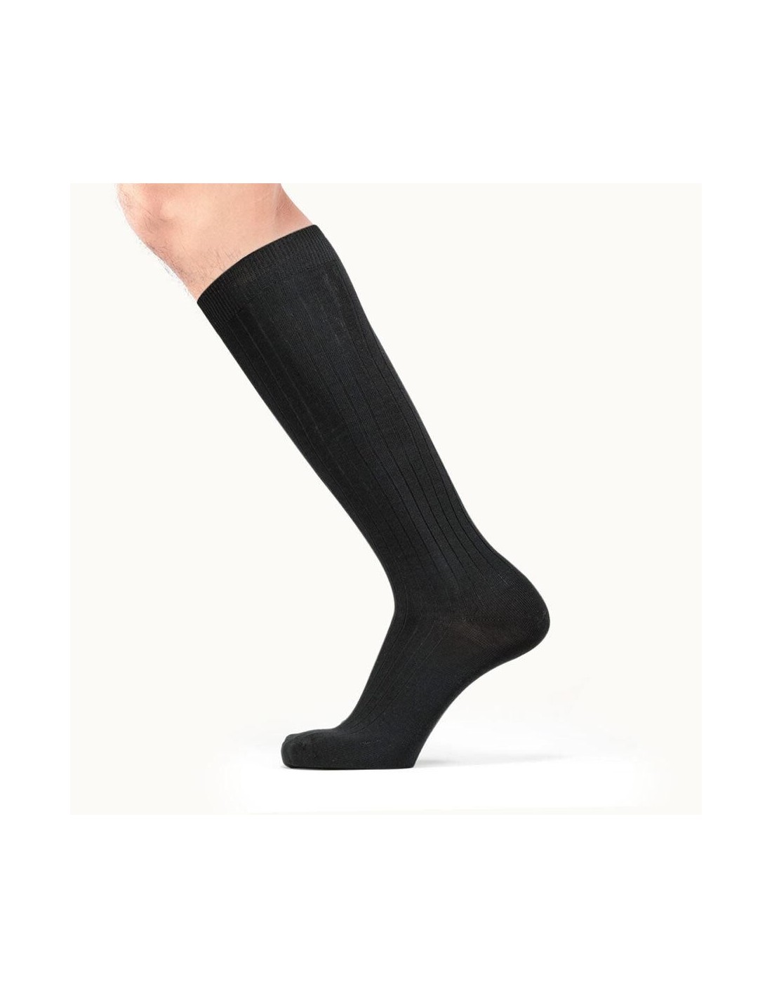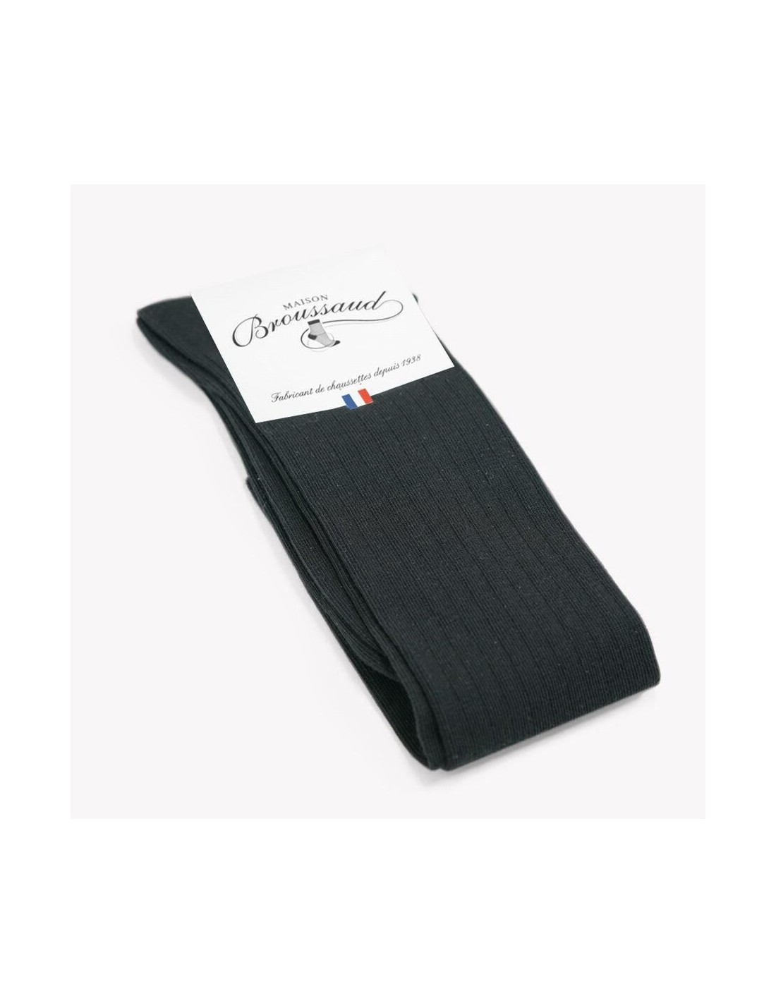 Rien de tel que les mis-bas en côtes plates de la Maison Broussaud pour affirmer votre élégance. La paire de chaussettes montantes "Les Côtelées Noir" est un basique, indispensable de toute garde-robe masculine. Grâce à une coupe ajustée, cette chaussette monte jusque sous le genou et assure un maintien impeccable sur la jambe. Sa hauteur cache la peau de la cheville et de la jambe, même lorsque le pantalon remonte. C'est indispensable pour garantir chaleur, confort et élégance tout au long de la journée. Préparez-vous à adopter une allure distinguée en toute occasion !