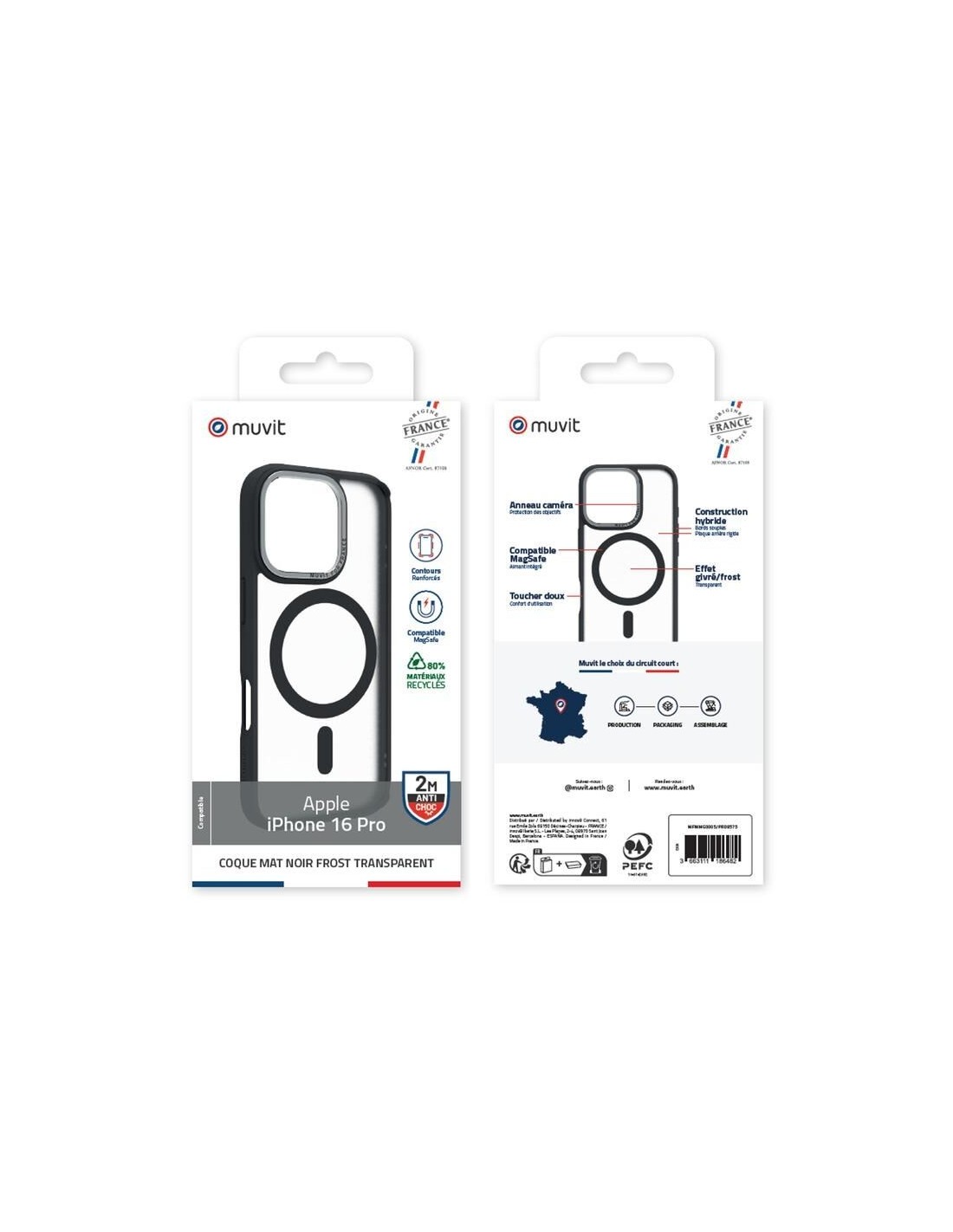 COQUE MAGSAFE 2M MAT FROST NOIR IPHONE 16 PRO