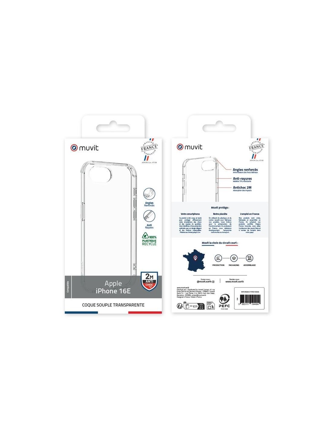 Imaginée, conçue et fabriquée en France, cette coque transparente recyclée incarne une approche éco-responsable : elle est réalisée à partir de 100 % de plastique recyclé et 100% recyclable, avec une production locale réduisant l’empreinte carbone de plus de 98%.