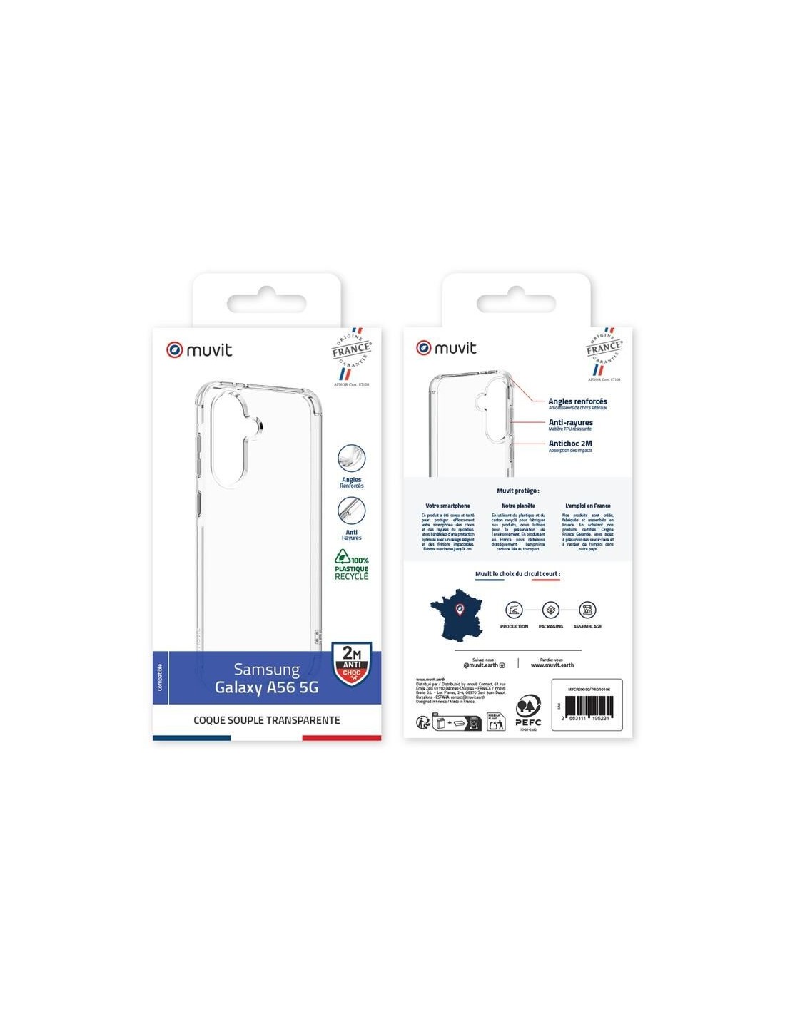 Imaginée, conçue et fabriquée en France, cette coque transparente recyclée incarne une approche éco-responsable : elle est réalisée à partir de 100 % de plastique recyclé et 100% recyclable, avec une production locale réduisant l’empreinte carbone de plus de 98%.
