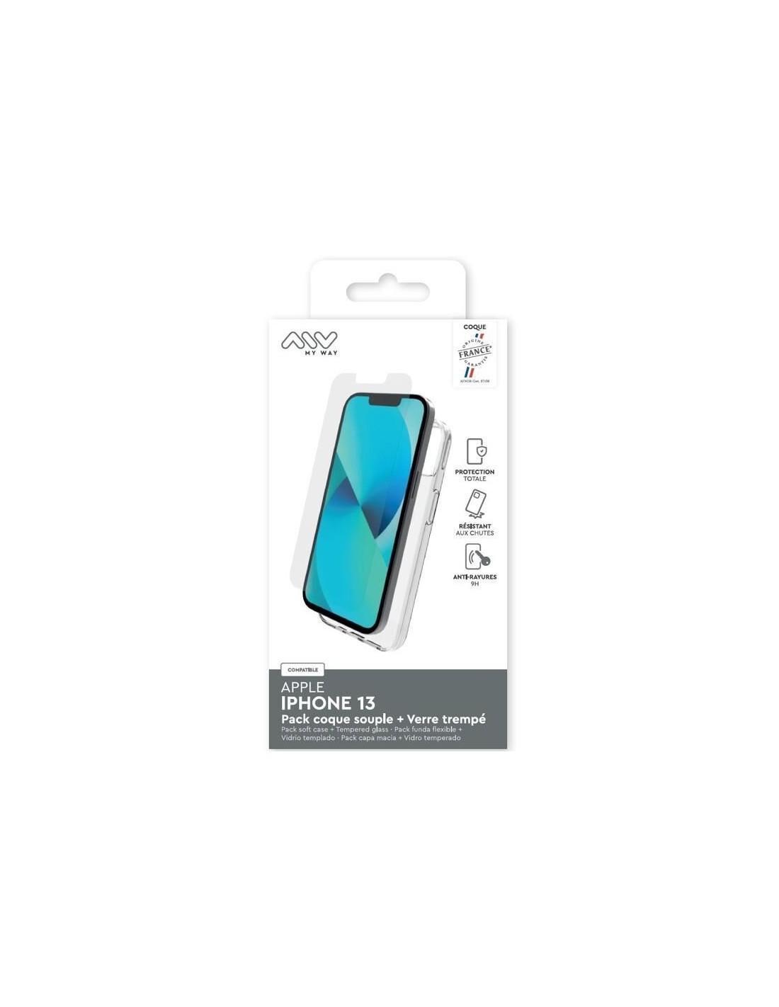 MYWAY FRANCE PACK COQUE SOUPLE + VERRE TREMPE IPHONE 13