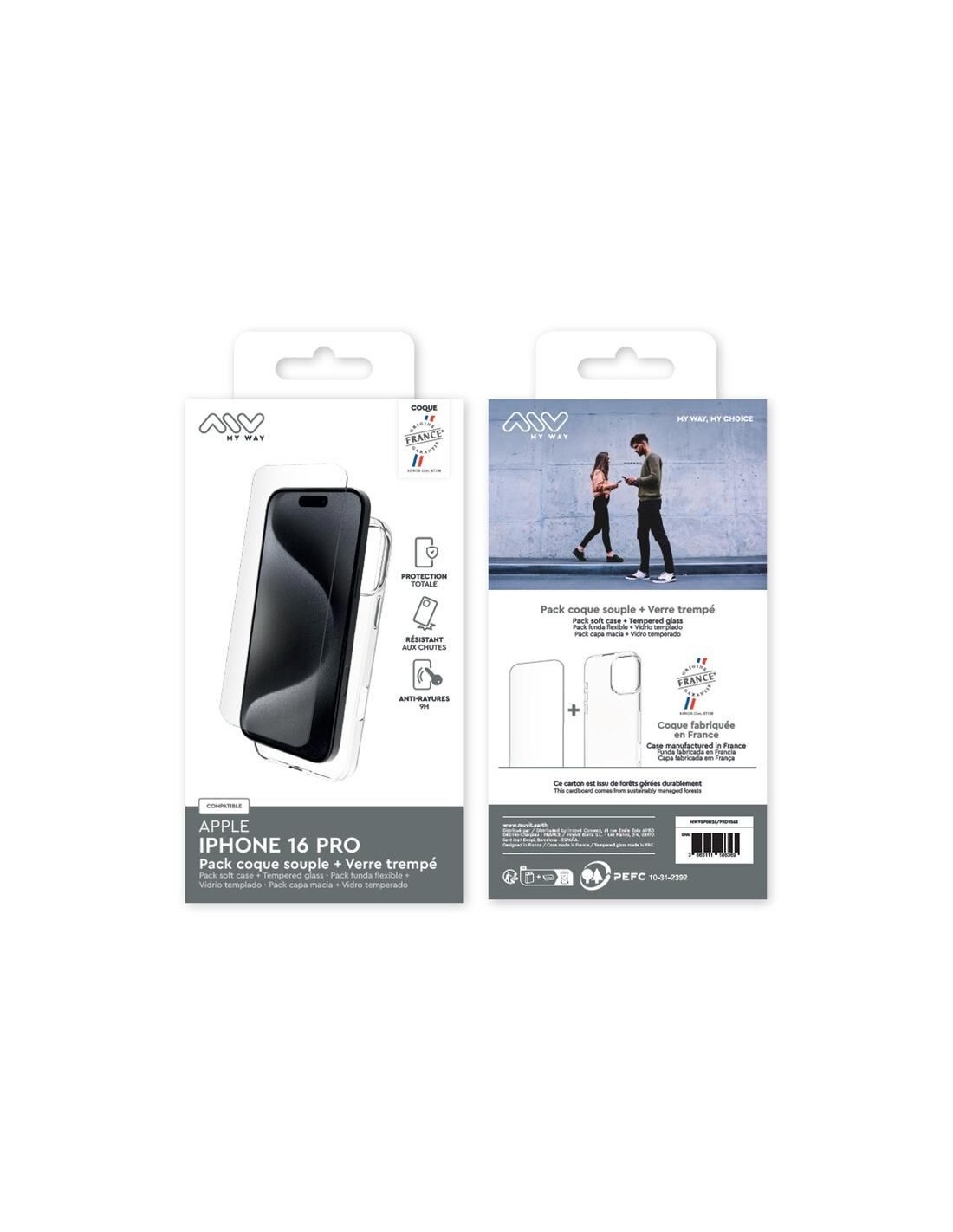 MYWAY FRANCE PACK COQUE SOUPLE + VERRE TREMPE IPHONE 16 PRO