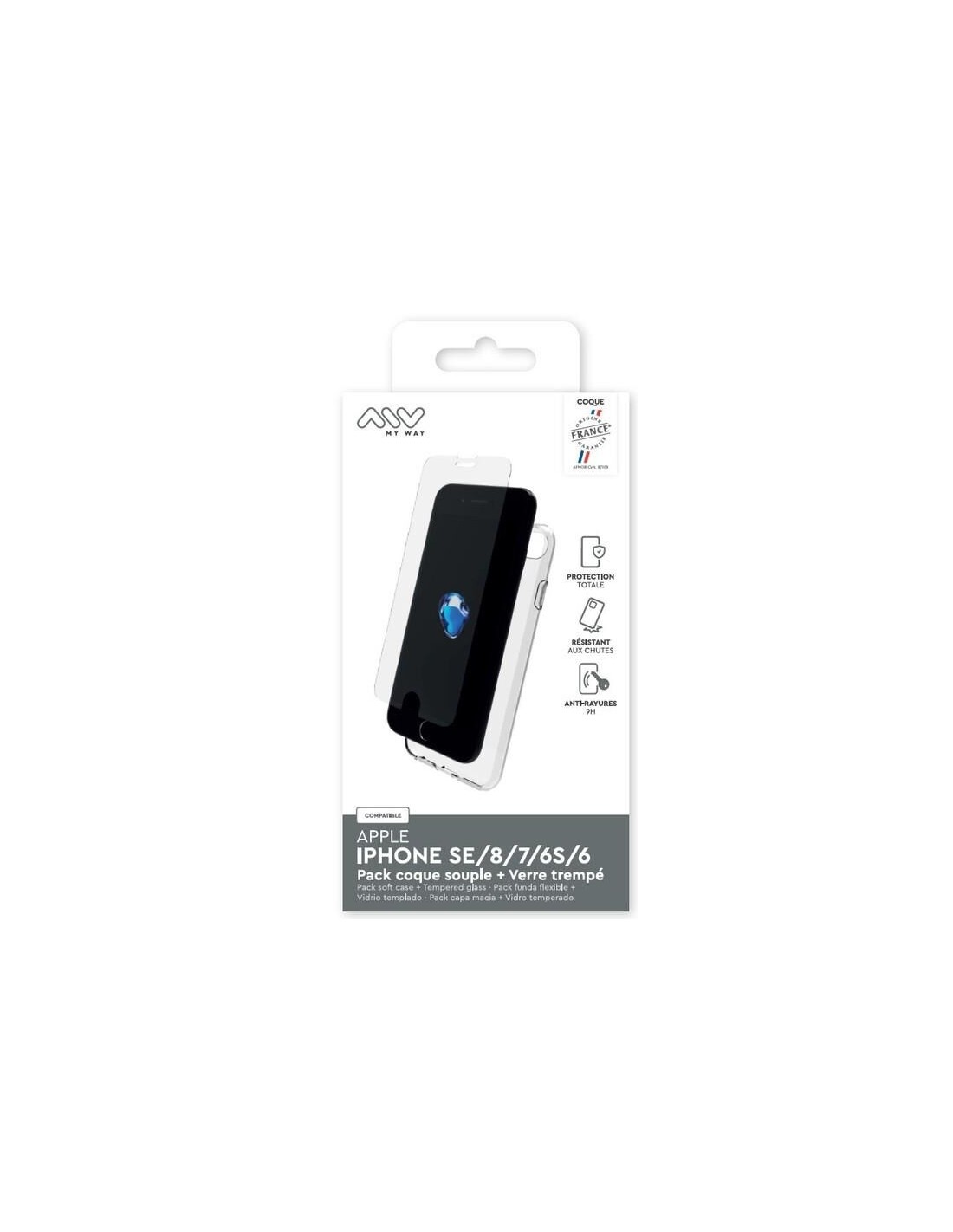 MYWAY FRANCE PACK COQUE SOUPLE + VERRE TREMPE IPHONE SE/8/7/6S/6