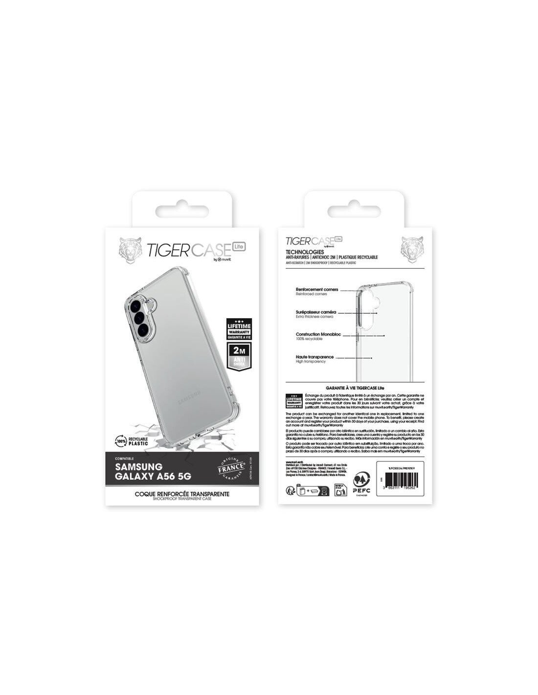 TIGER CASE LITE FRANCE COQUE TRANSPARENTE 2M SAMSUNG GALAXY A56 5G GARANTIE VIE