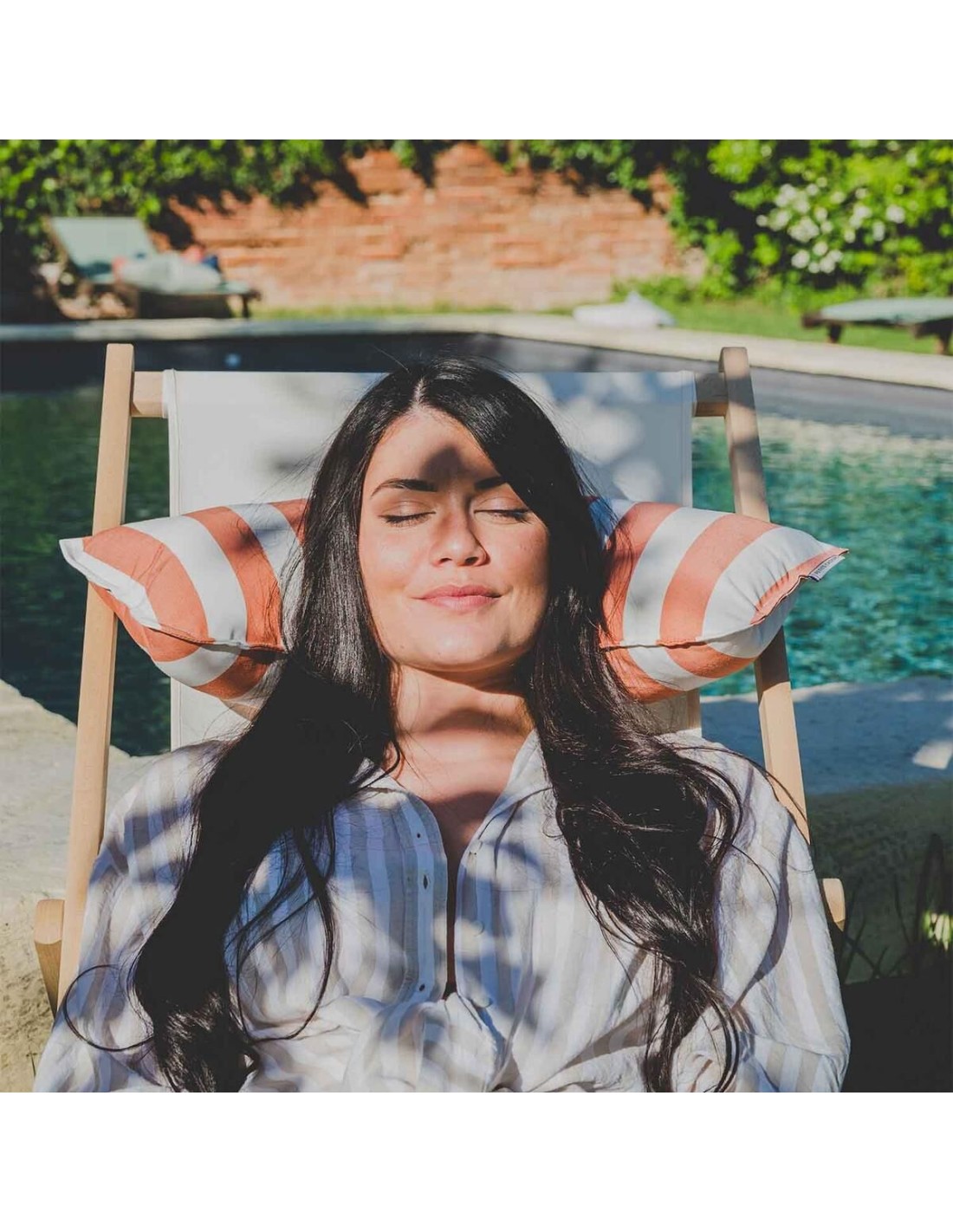 Son confort ample et moelleux font de ce grand coussin un indispensable objet de bien-être que vos cervicales vont grandement apprécier. Vous poserez votre tête contre lui pour profiter d’une sensation immédiate de relâchement confortablement installé-e sur votre transat, une chaise longue ou un hamac.