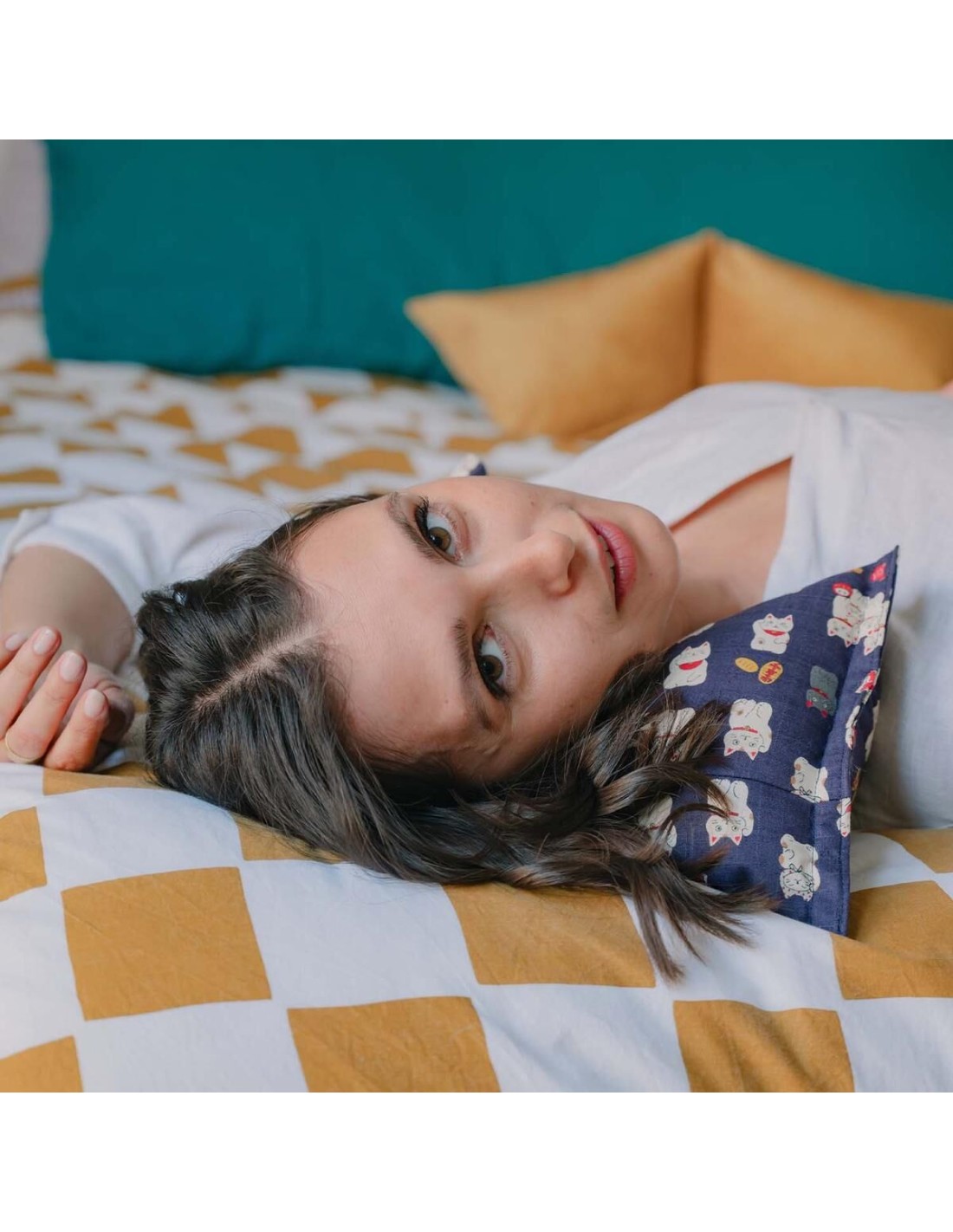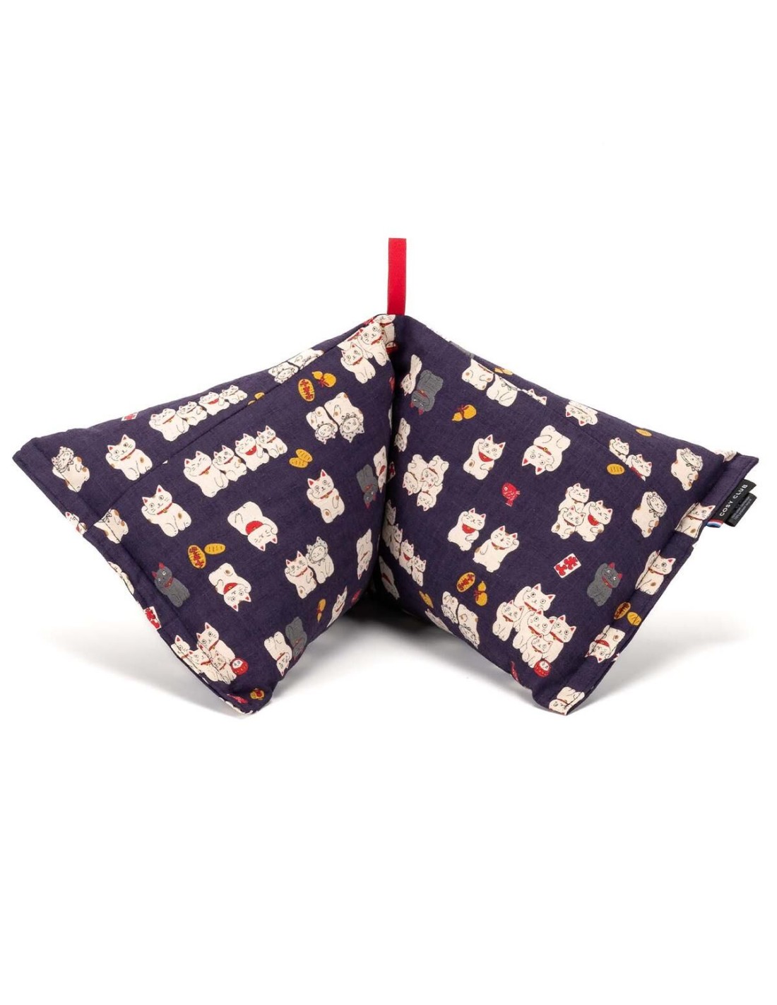 Ce coussin de tête SALVADOR est spécialement conçu pour maintenir délicatement les cervicales. Paré de chats porte-bonheurs sur fond aubergine, ce coussin au motif japonais ravira les fans de culture Japonaise !