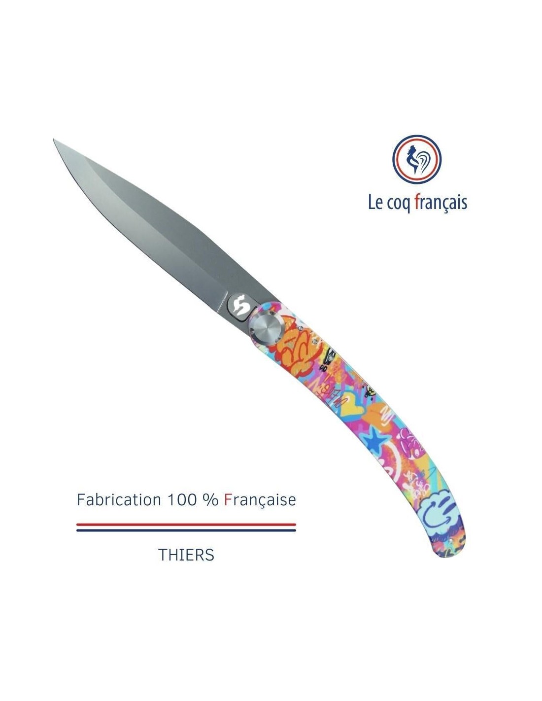 Le fameux couteaux Le Coq Français Original extra plat au design intemporel avec une sublimation qui permet d'avoir un rendu durable et détaillé. Etui inclus.