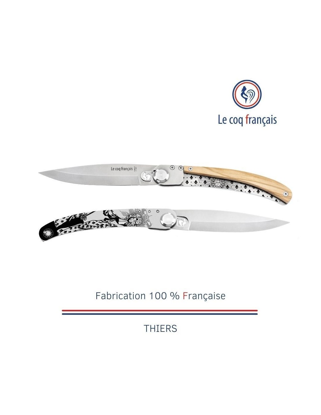 Le fameux couteaux Le Coq Français Original extra plat au design intemporel et à la gravure unique. Etui inclus.