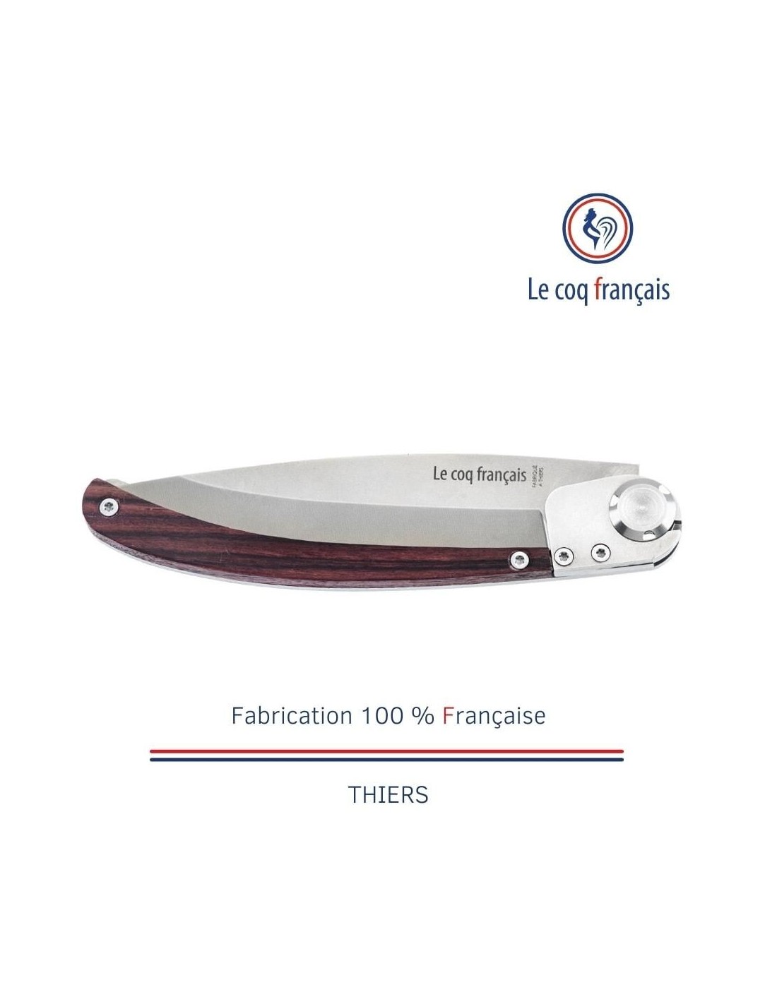 Le fameux couteaux Le Coq Français Original extra plat au design intemporel et à la gravure unique. Etui inclus.