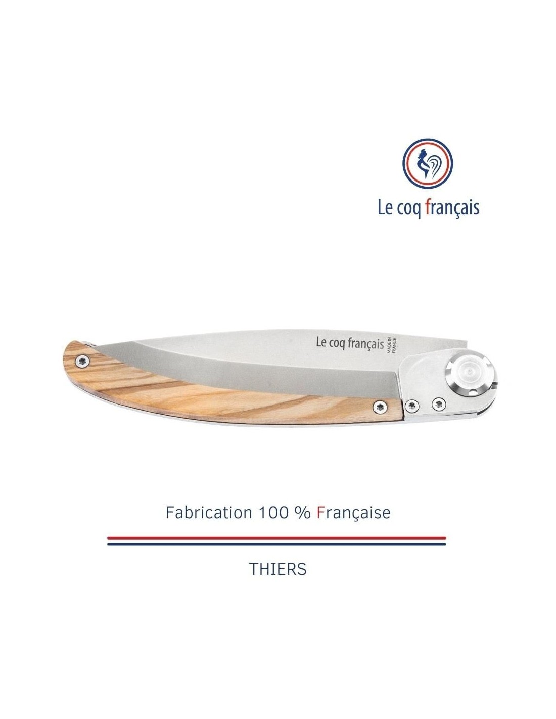 Le fameux couteaux Le Coq Français Original extra plat au design intemporel et à la gravure unique. Etui inclus.