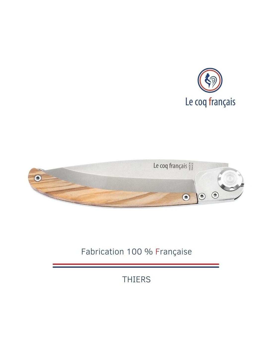 Le fameux couteaux Le Coq Français Original extra plat au design intemporel et à la gravure unique. Etui inclus.