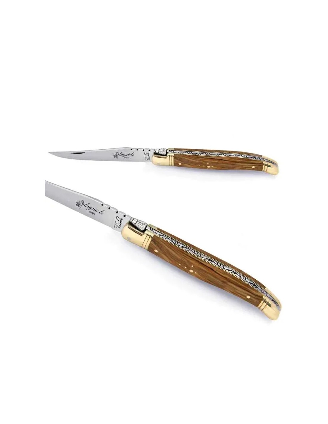 Couteau laguiole manche en bois d'olivier et mitres en laiton 12cm