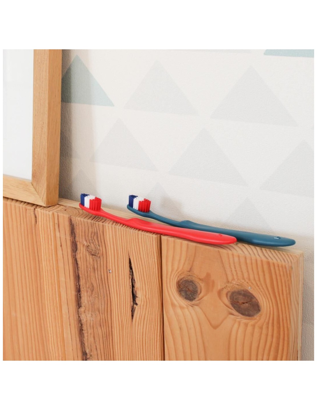 Adoptez la brosse à dents Dupont de Bioseptyl, symbole du savoir-faire français, avec son manche disponible en rouge ou bleu et ses filaments bleu-blanc-rouge.