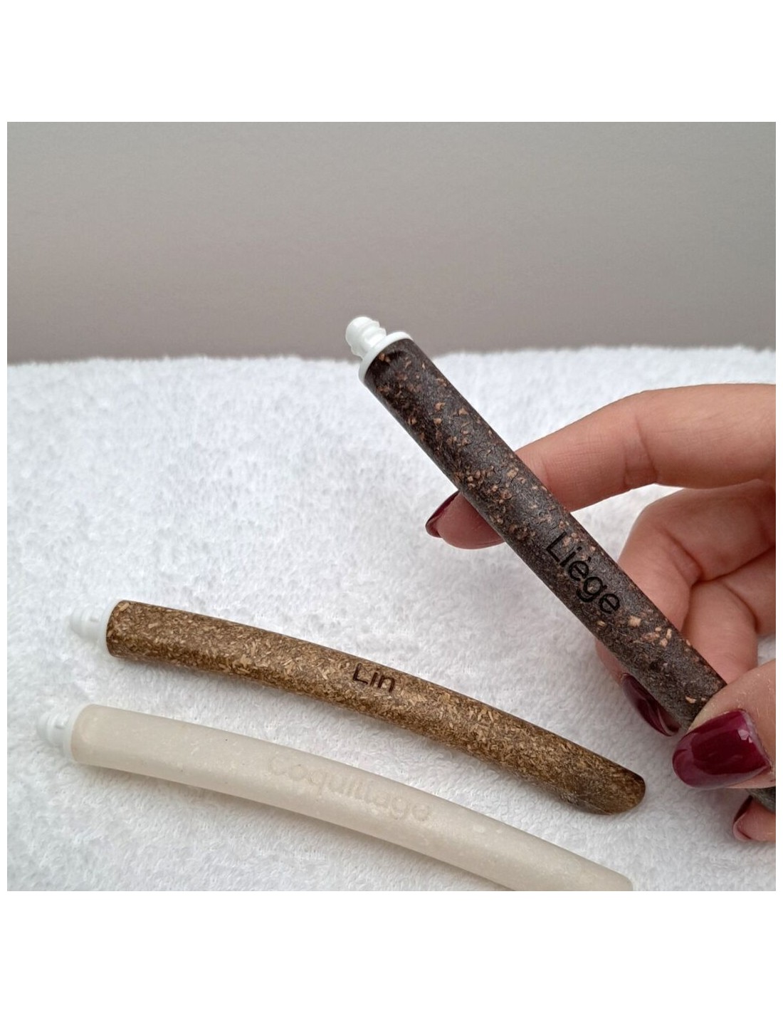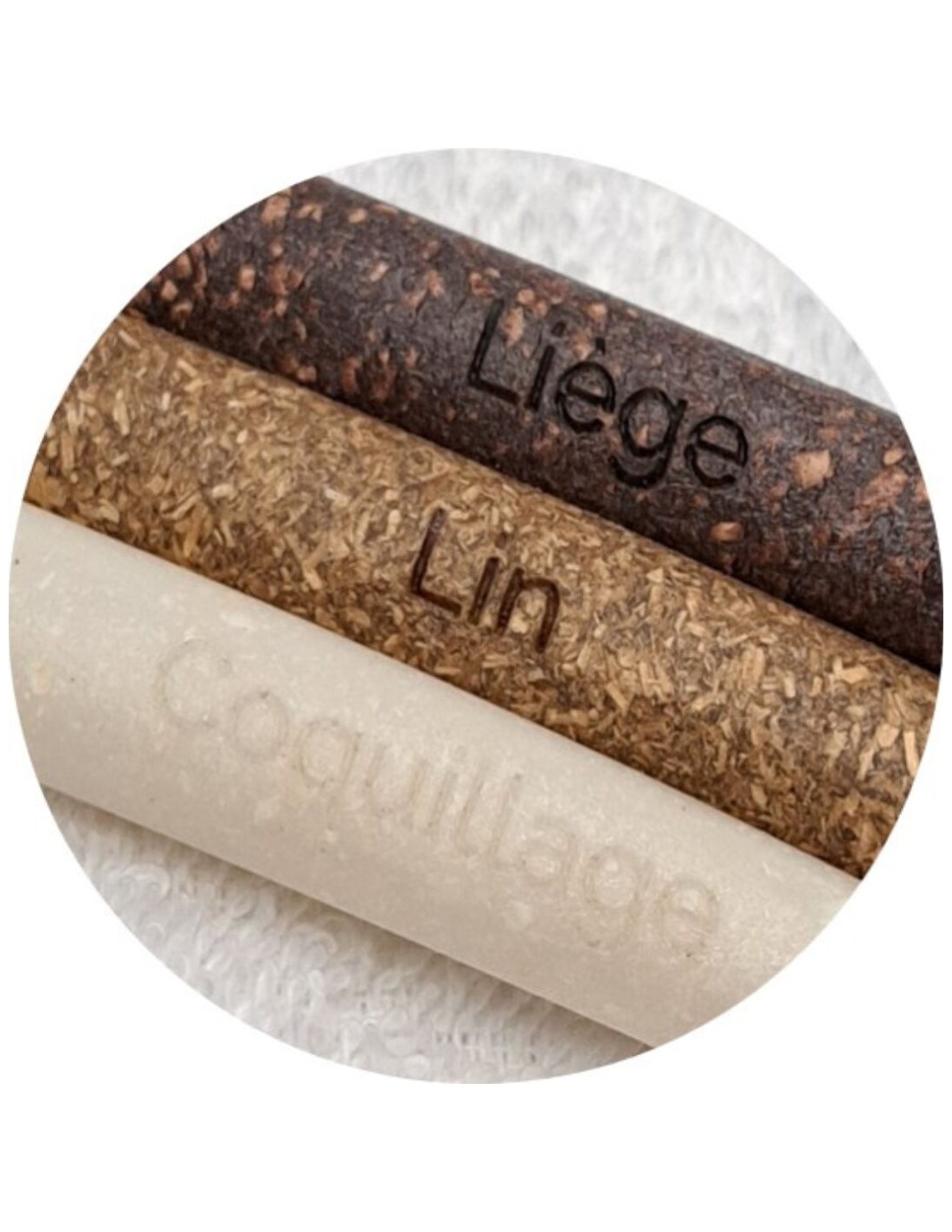 Gravure offerte pour personnaliser votre manche (rendu plus marqué sur le lin et le liège, plus discret sur la coquille Saint-Jacques).