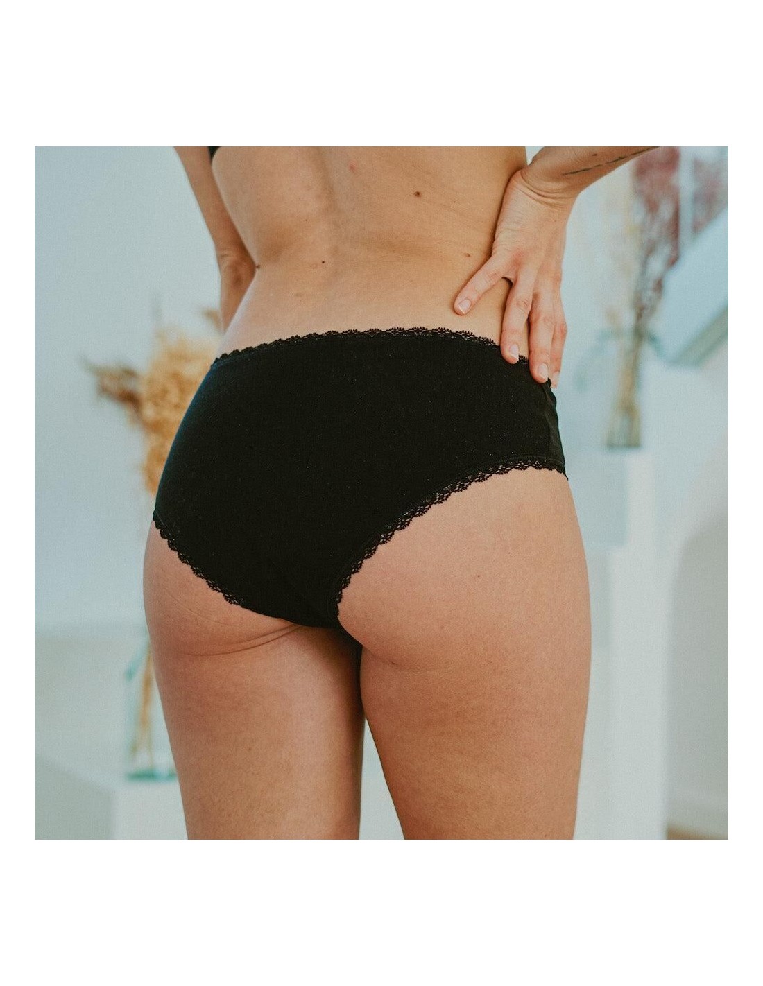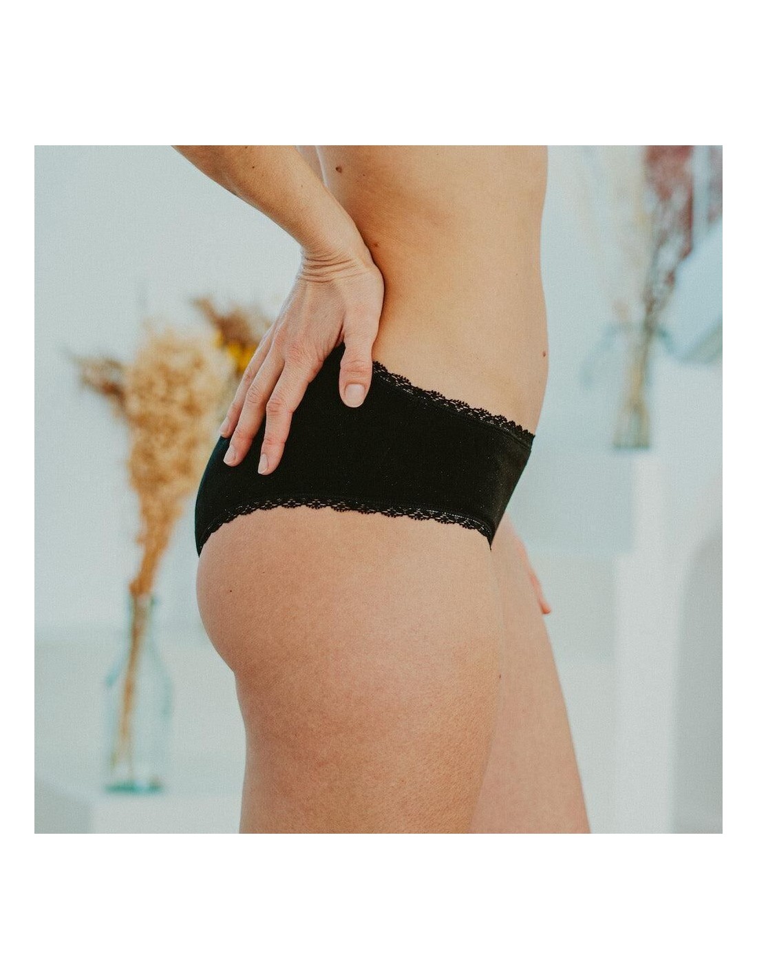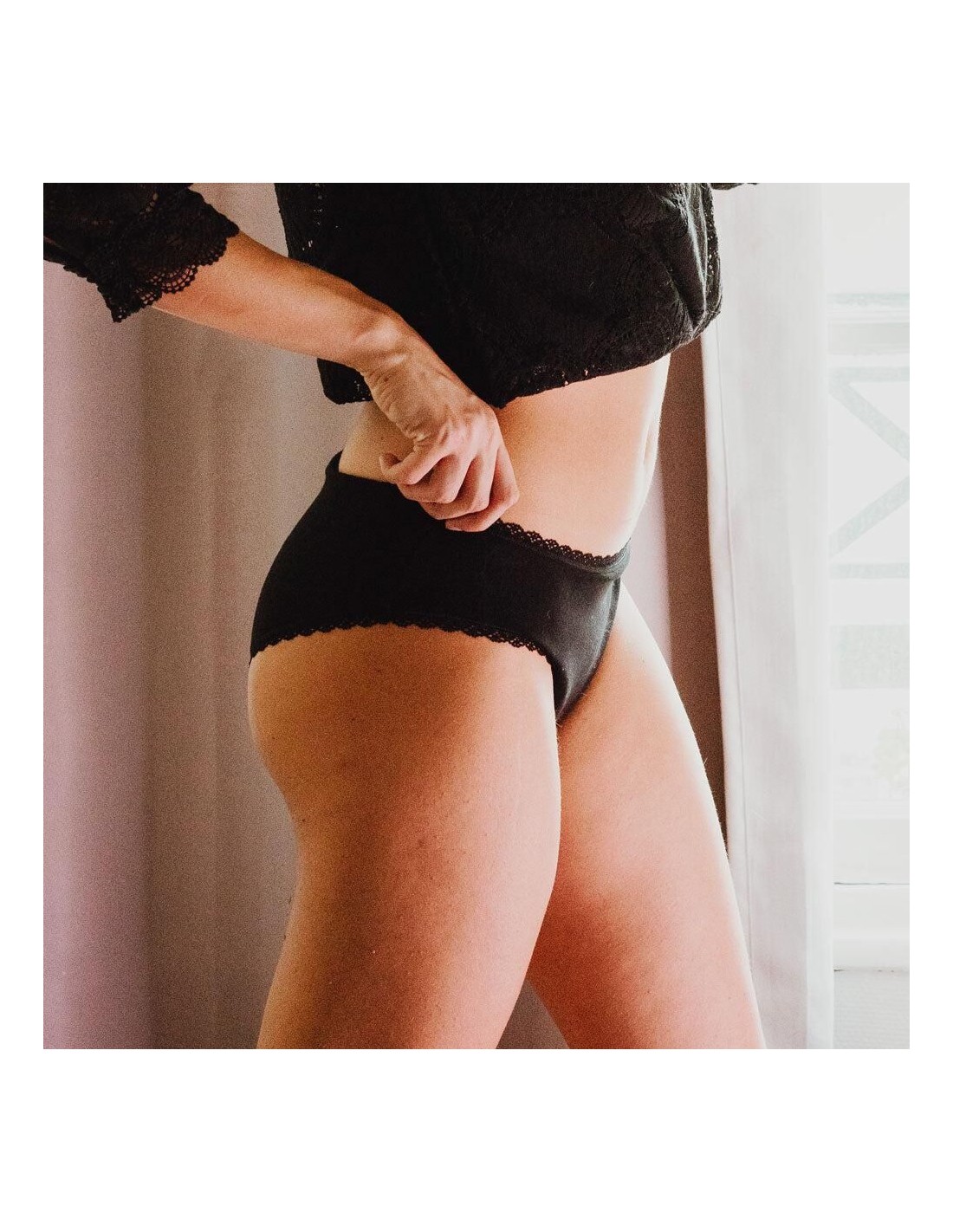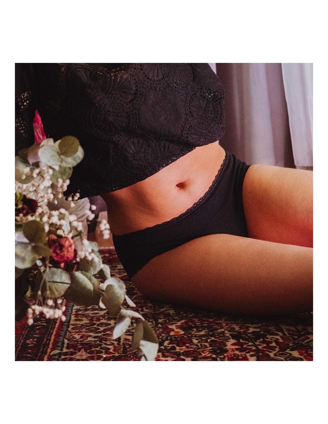 Ce modèle taille grand, veuillez consulter notre guide des tailles pour bien choisir. Pour découvrir d'autres options, n’hésitez pas à consulter nos culottes menstruelles pour le sport, qui accompagnent vos mouvements dans toutes les positions et tous les sports. Vous pouvez également découvrir nos culottes menstruelles pour la nuit pour un confort optimal pendant votre sommeil, nos modèles de shorty et boxer menstruels pour compléter votre collection de lingerie menstruelle, ainsi que nos culottes grossesse et post-partum pour une protection adaptée après l'accouchement. Pour une absorption efficace, n’hésitez pas à consulter nos culottes pour flux abondants.