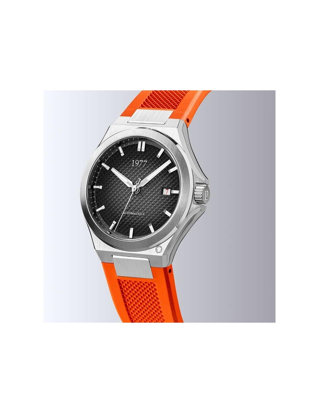 Montre 1977 Arsène Cadran Noir Bracelet FKM Orange