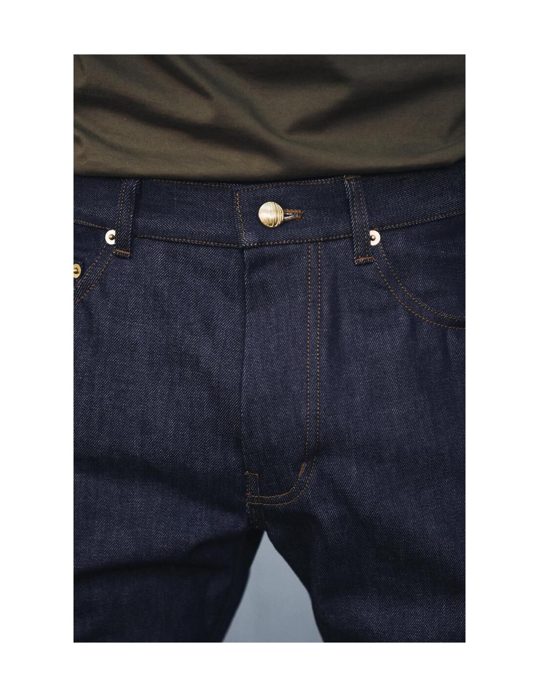 La coupe du JEAN GABRIEL est subtilement posée au-dessus de la taille, la jambe est droite mais sans excès, son taillant est confortable tout en dessinant les formes.