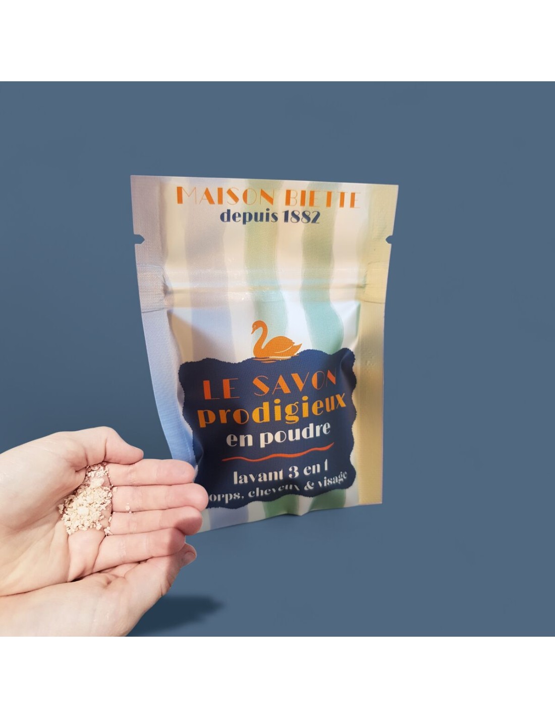 La poudre de savon naturel 3 en 1 nettoie, purifie et nourrit la peau du corps, du visage et des cheveux.