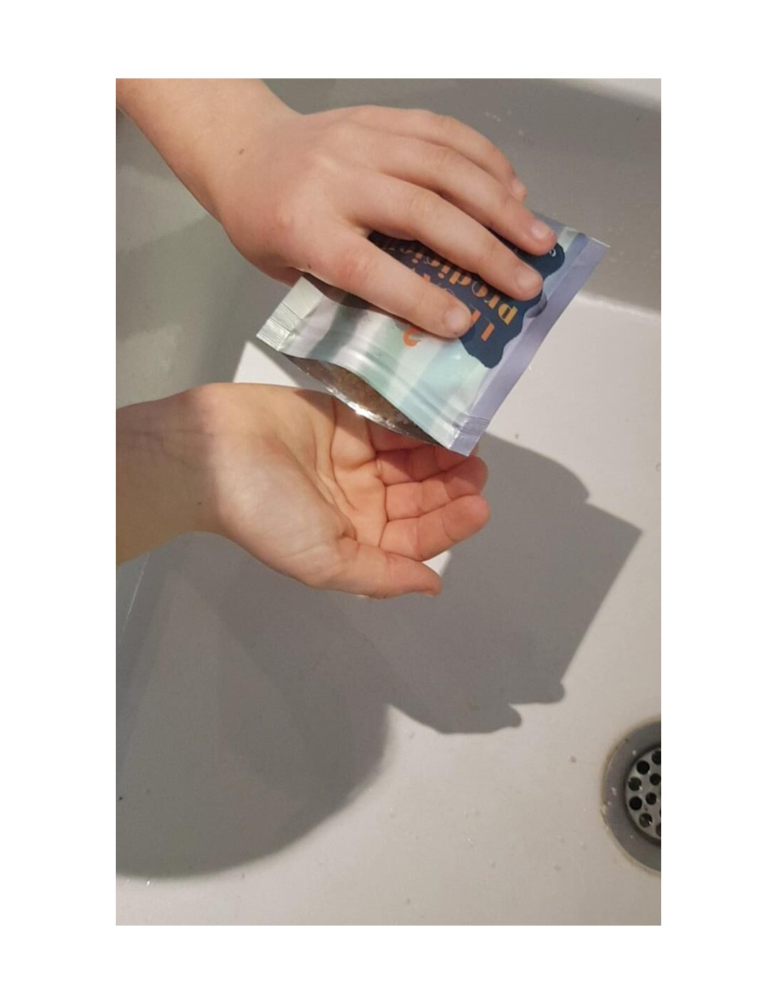 Proposée en poudre dans un sachet refermable, la poudre lavante 3 en 1 est facile