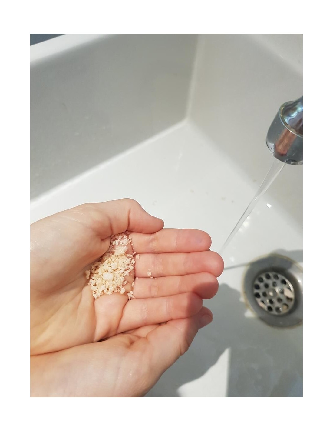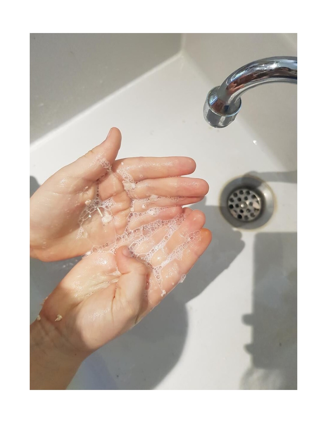 3 - Faire mousser avec l'eau et appliquer sur les cheveux, le visage, le corps. Rincer à l'eau claire.