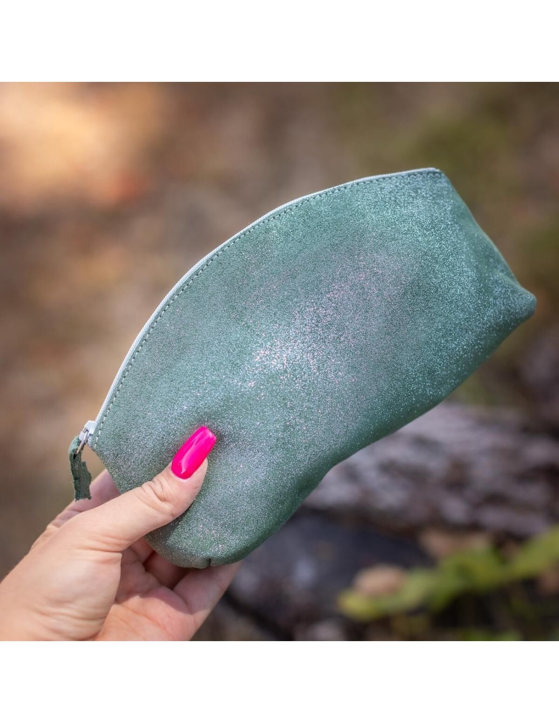 Maxi Trousse à Trésors en cuir Pailleté Basilic