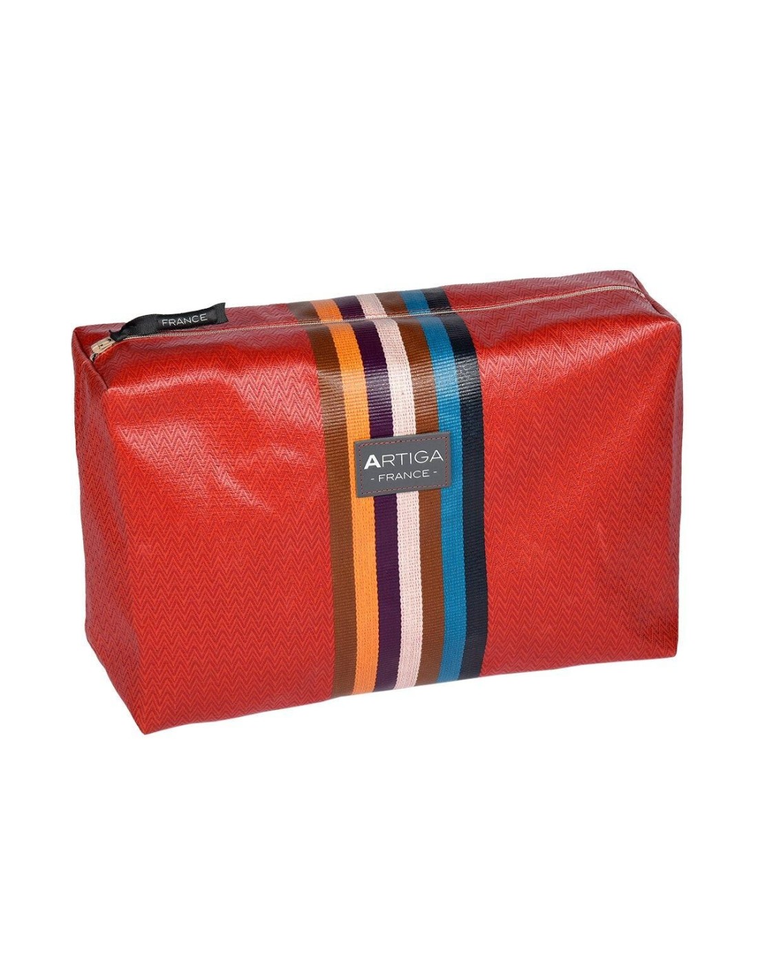 Cette trousse de toilette grand format Chevron Noir, 20 x 30 x 8 cm, en toile 100% coton avec traitement imperméable et ciré, a été créée et confectionnée dans notre atelier situé dans le Sud-Ouest, dans le respect des tissages traditionnels basques. Elle dispose d'une fermeture à glissière sur le dessus. A coordonner avec nos sacs en toile cirée.