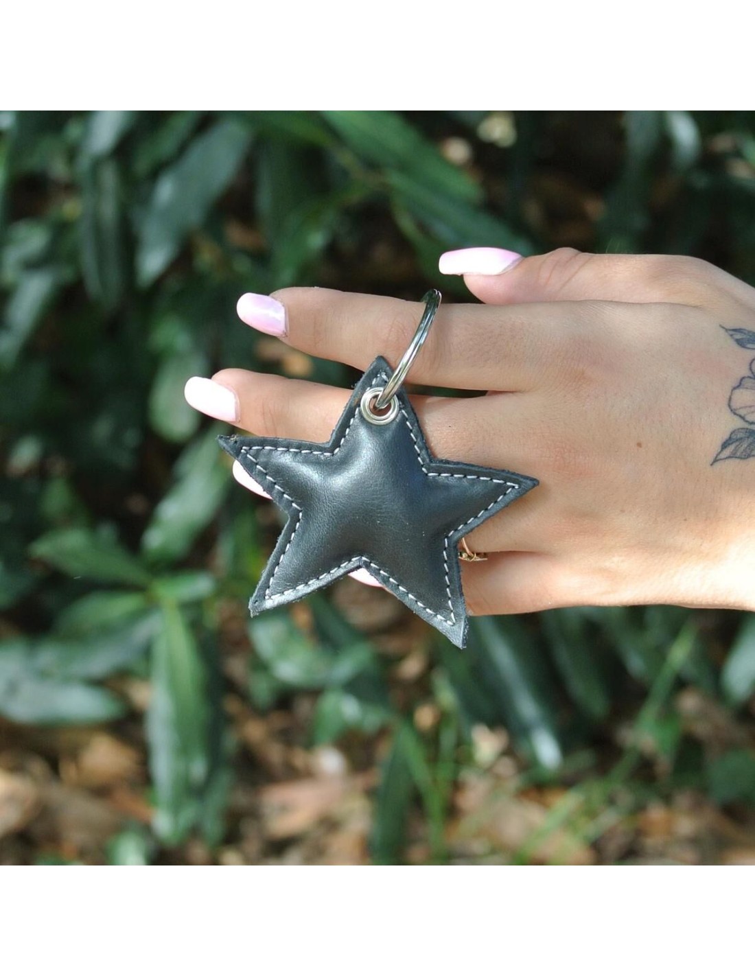 Porte-Clés Etoile en cuir Mixte Noir