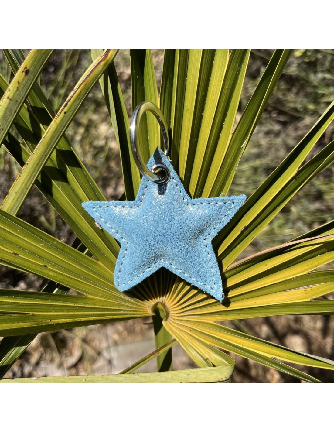 Porte Clés Etoile en cuir Pailleté Bleu Ange