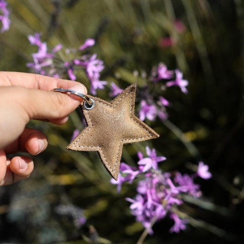 Porte-Clés Etoile en cuir Pailleté Cacahuète
