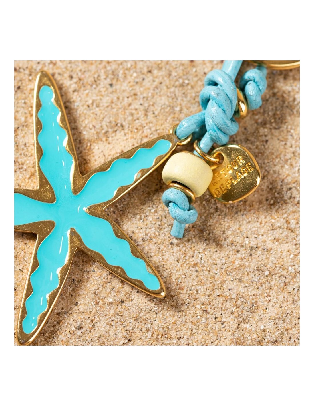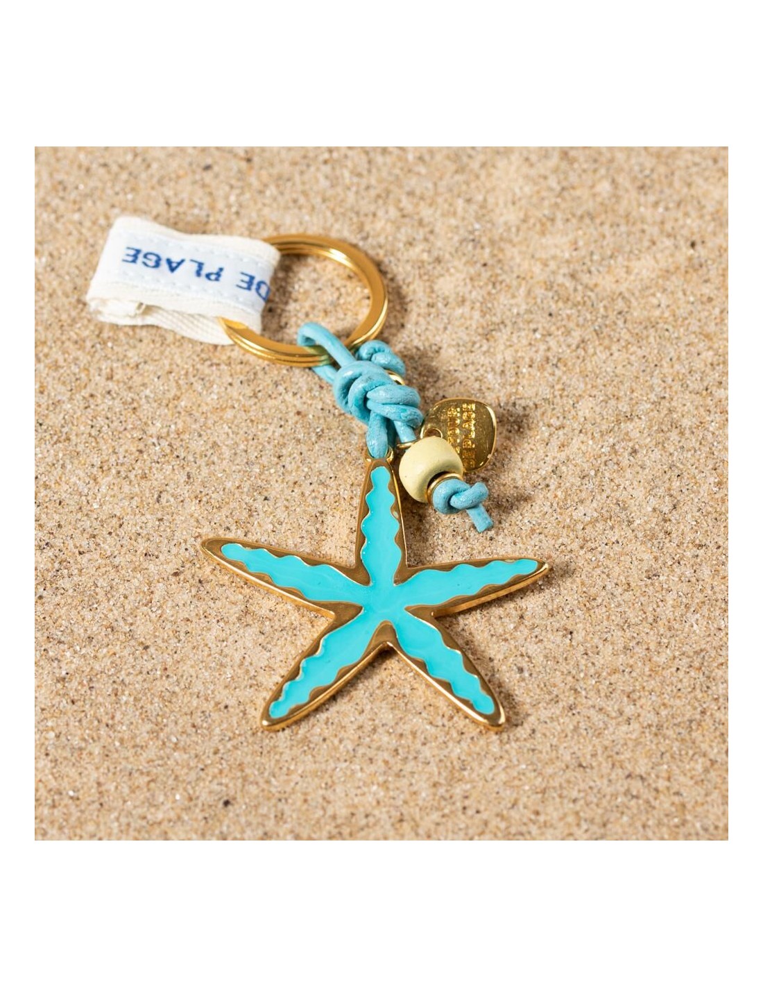 Ce porte-clé Bob fabriqué à la main est un accessoire coloré. Son pendentif en étoile de mer et sa perle en céramique s'accordent aux nuances du cordon en cuir.