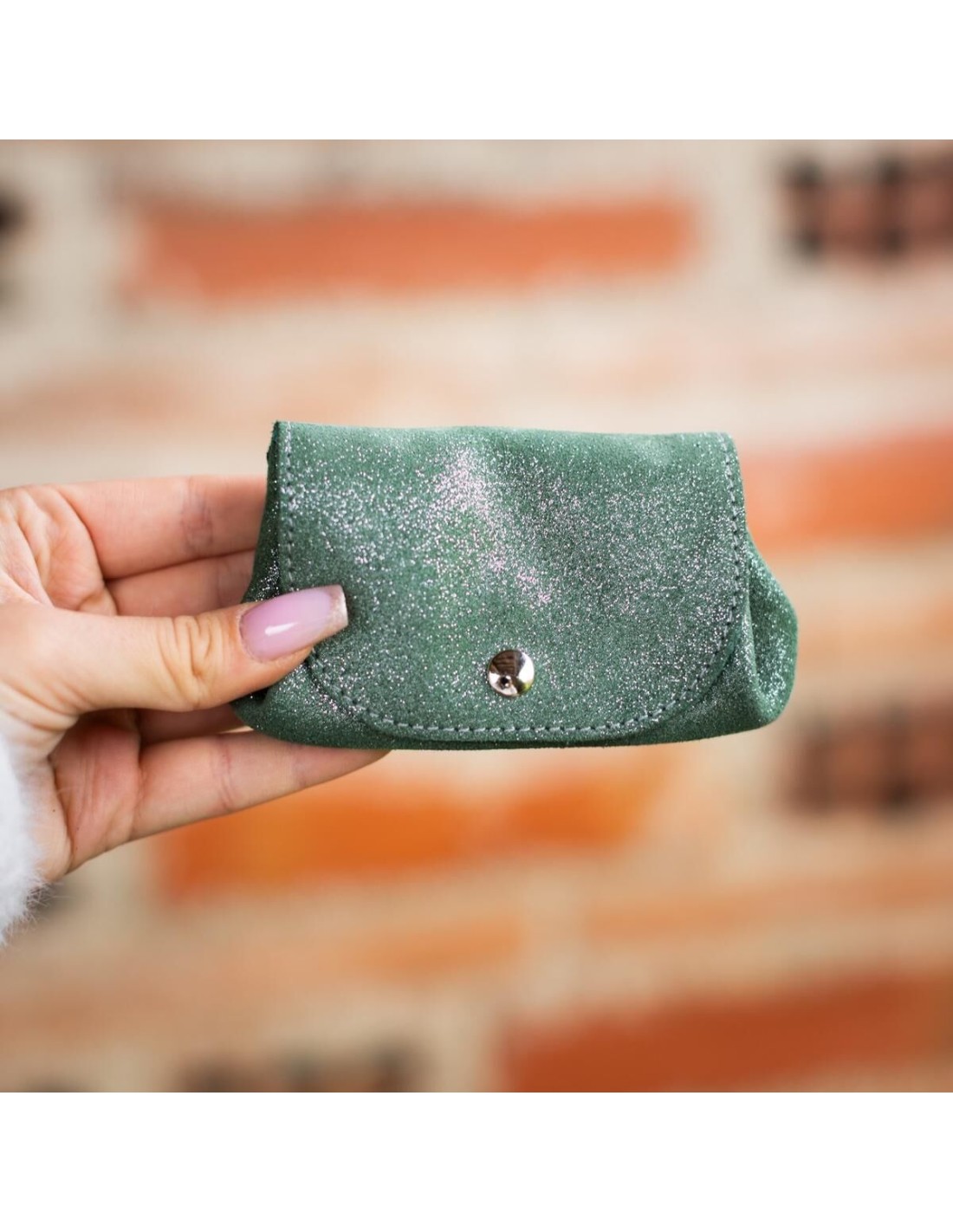 Porte monnaie Accordéon en cuir Pailleté Basilic