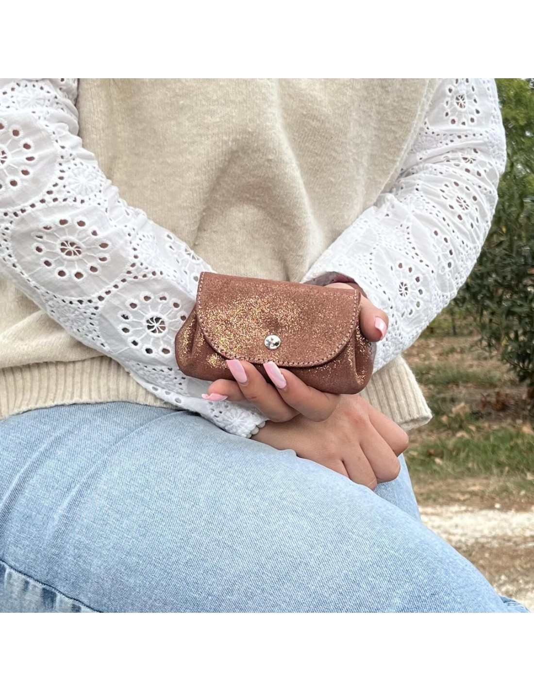 Porte-Monnaie Accordéon en cuir Pailleté Cannelle Cuivré
