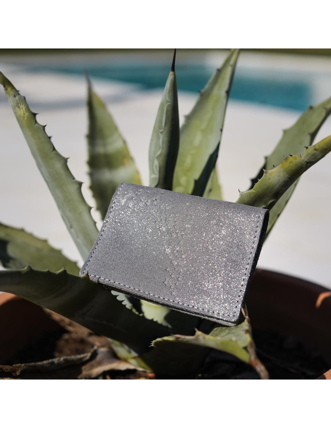 Etui Double à Cartes en cuir Pailleté Plume