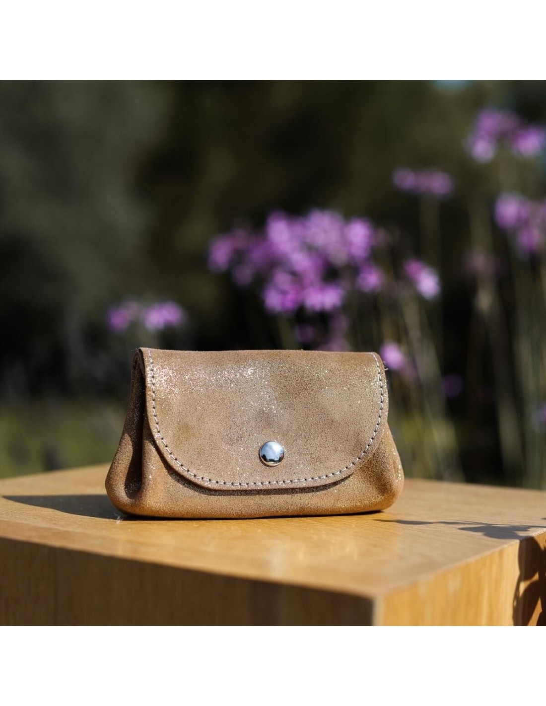 Porte-Monnaie Accordéon en cuir Pailleté Cacahuète